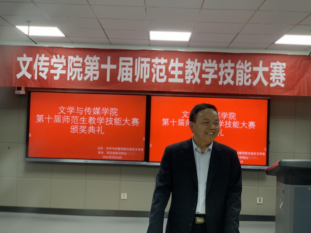 激动人心的颁奖环节结束后,经理杨运庚做总结发言。他首先对三位评委老师的精彩点评、组织大赛的老师和师范技能社同学的辛勤付出、初赛阶段全体教师的耐心指导、十二位选手的辛苦备赛表示了感谢。希望同学们借大赛之机充分认识到优秀教师的成长要脚踏实地不断进取的道理。同时希望获奖选手戒骄戒躁继续努力,争取在校赛省赛中取得优异成绩。