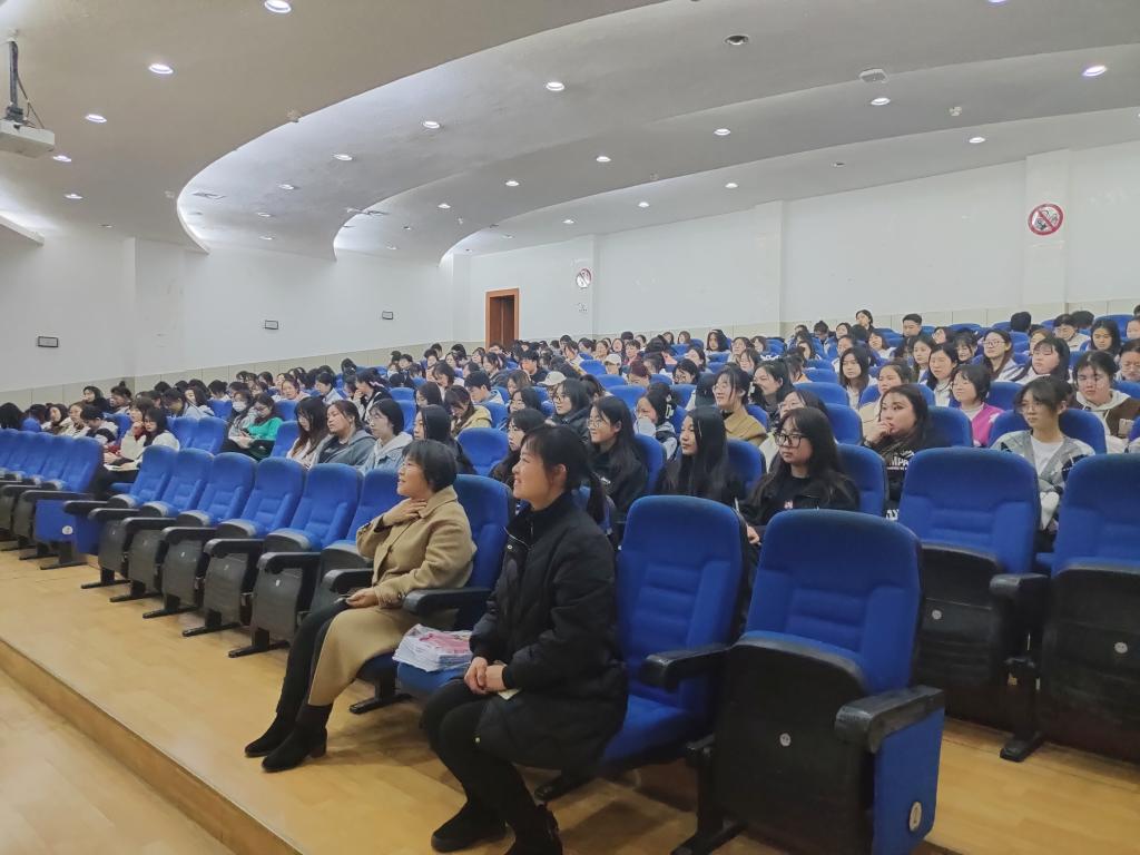 应suncitygroup太阳集团邀请,汉滨初中高新校区教师王娅莉于2023年3月3日晚在江南校区一号教学楼报告厅为汉语言文学专业2020级全体员工讲授“教师职业特征与教师职业规划”。公司教学副经理李婷、汉语言文学系主任韩文霞到场聆听讲座。
