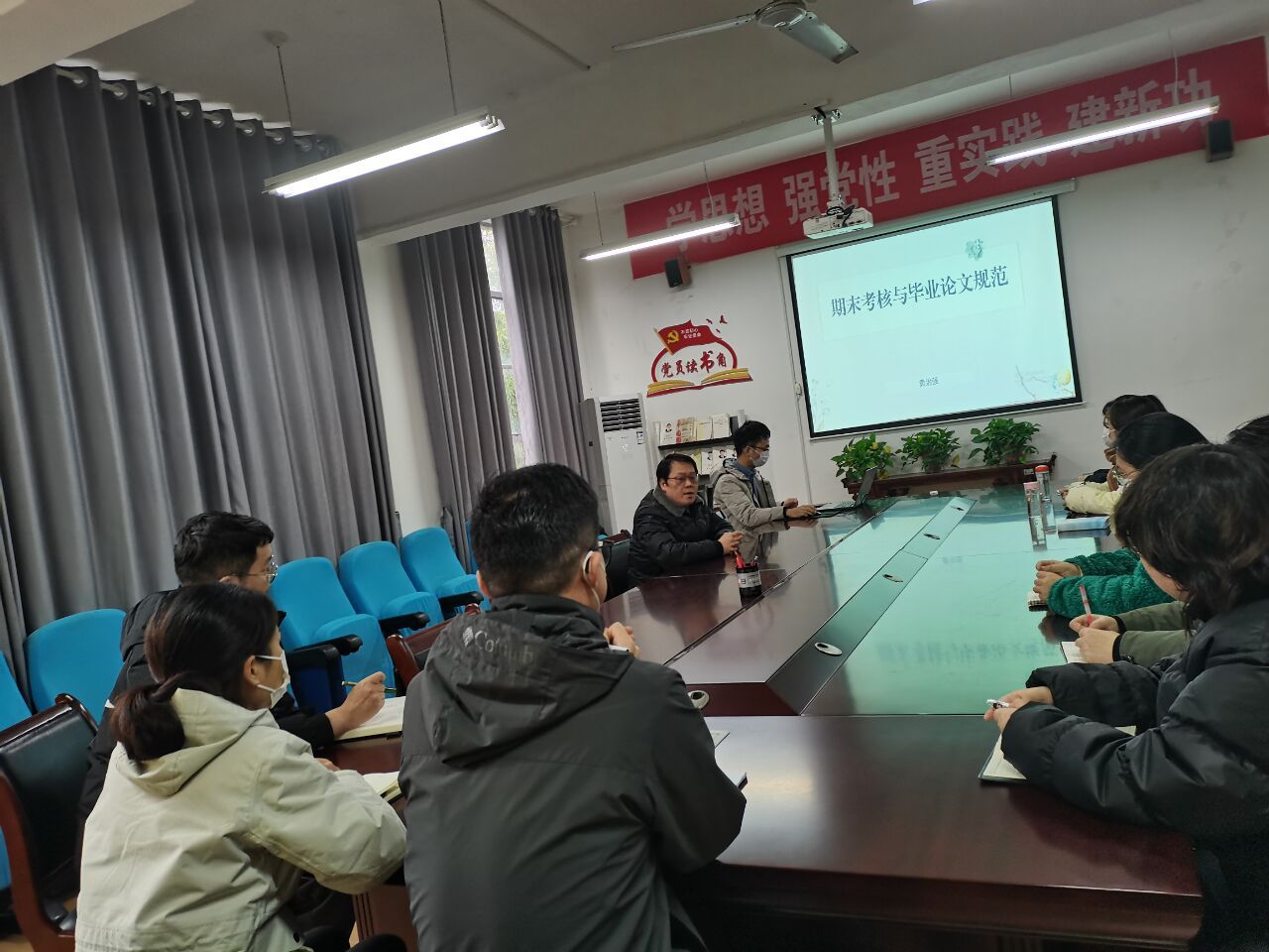 为提高青年教师的期末出题水平和毕业论文指导质量,提升公司的教学资料归档质量,以更好地迎接公司产品审核评估,12月13日下午,suncitygroup太阳集团在2307会议室组织青年教师开展了“期末考核及毕业论文规范”经验交流活动。活动由副经理朱云主持,公共教研室主任黄治强老师主讲,近三年新入职青年教师参会学习交流。