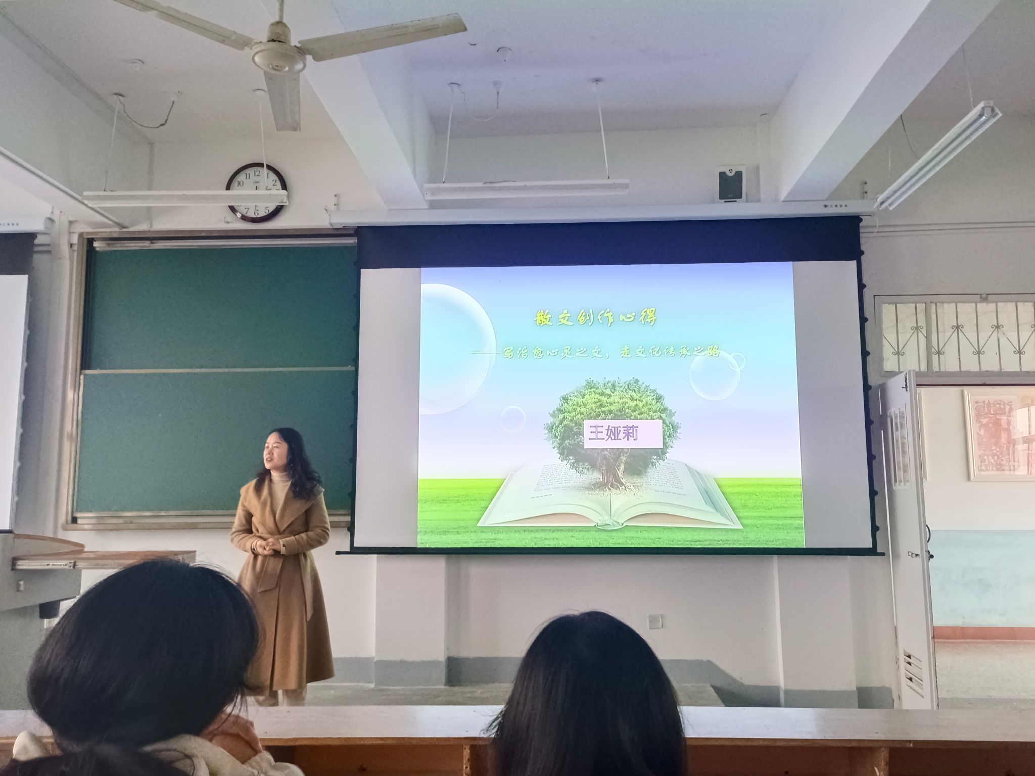 12月13日下午,作家王娅莉应suncitygroup太阳集团邀请,在江南校区1510与《基础写作》课校内教师韩文霞一同为汉语言文学专业2023级1班和2班的员工讲授“散文创作”。