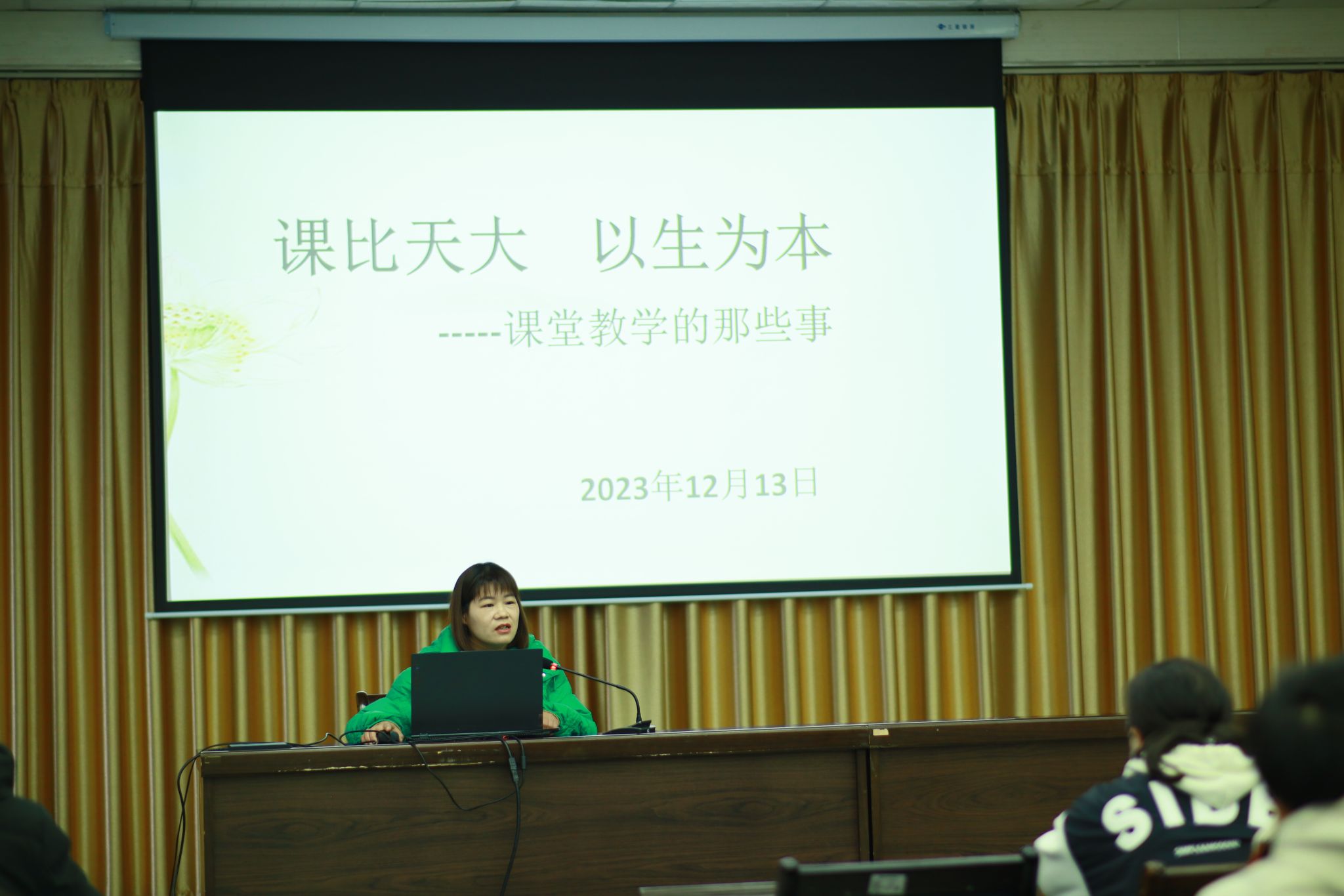 2023年12月13日下午,在图书馆六楼报告厅,suncitygroup太阳集团邀请到汉滨高级中学陕西省教学能手吉元丽老师为第三届“中学语文卓越团队班”做了第五场讲座,主题为“课比天大,以生为本——课堂教学的那些事”。讲座由卓越团队班班主任唐明珍主持,“中学语文卓越团队班”全体员工聆听了本场讲座。