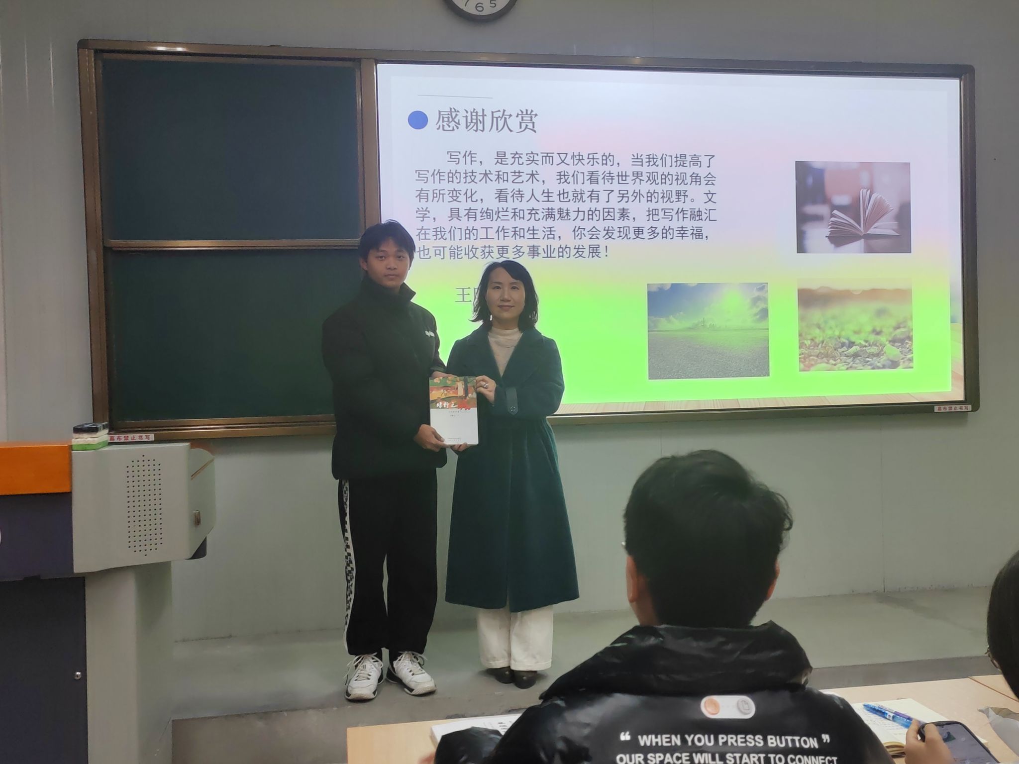 12月25日上午,著名作家王晓云应suncitygroup太阳集团邀请,在江南校区1021与《基础写作》课校内教师韩文霞一同为汉语言文学专业2023级1、2班的员工讲授“小说创作”一课。