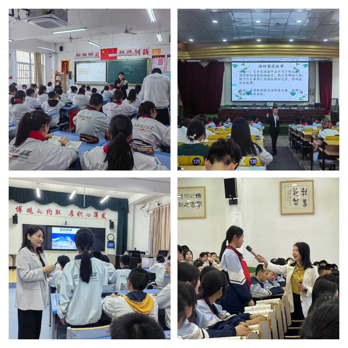 汉滨初中大桥路校区董事长全东、教务处主任张静、语文备课组柏虎峰老师以及汉滨高中教育集团永红校区董事长鄢麒麟、副董事长史胜高等对本次教育见习活动高度重视,并做了精心的准备。在细致周到的安排下,同学们切身体验了课堂教学、班级管理、课间操活动等各项中学日常工作以及校园文化学习。操千曲而后晓声,观千剑而后识器,一节节有厚度、有深度、有温度、有思想的语文课,一堂堂精心雕琢、别具匠心的语文课堂,让见习学子们受益匪浅。见习中同学们仔细观察、用心记录,课下与上课教师积极互动交流,满载而归。