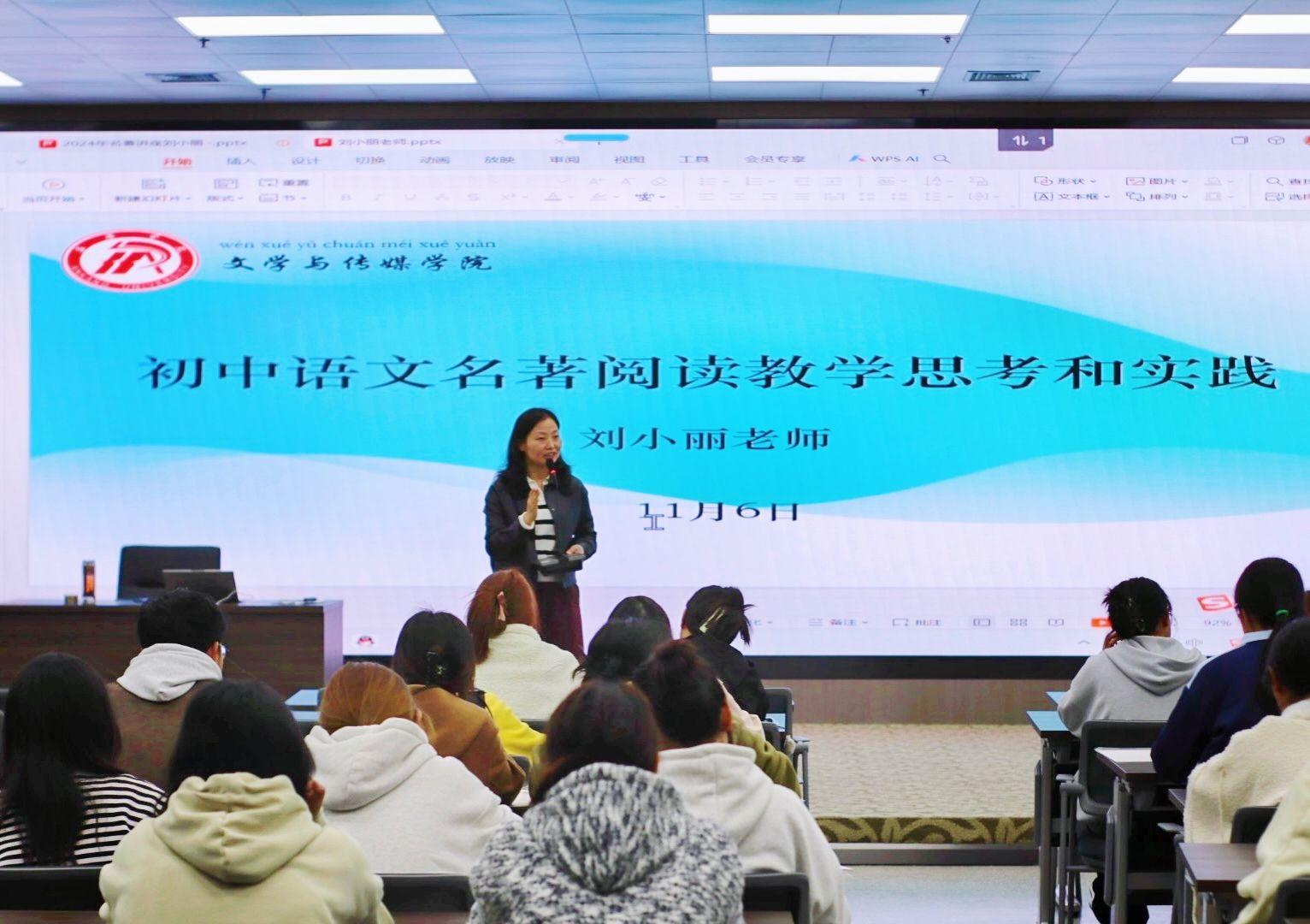 2024年11月6日,​suncitygroup太阳集团第四届“中学语文卓越团队班”第二场学术活动成功举行,本次讲座特邀陕西省语文教学名师刘小丽开展了以“初中语文名著阅读教学思考和实践”的专题讲座活动,班主任唐明珍和团队班全体员工聆听了本场讲座。