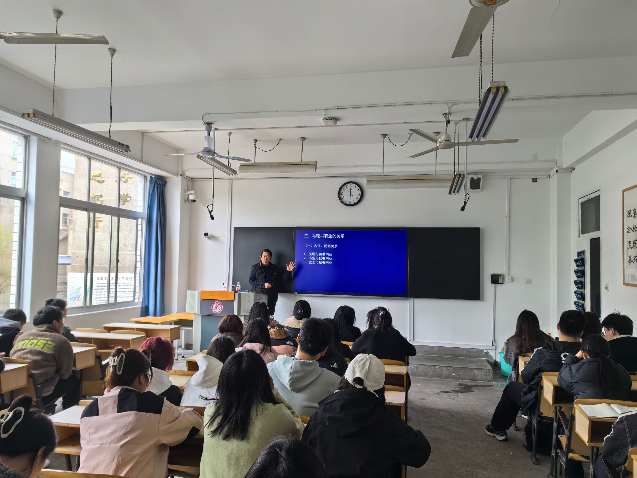 36日,秘书与新媒体系在1209教室成功举办《行业企业问题讲座》第讲。此次特邀安康市图书馆馆长李焕龙秘书学专业2022级全体同学带来了一场题为“图书馆行业与秘书工作”讲座讲座由秘书学专业负责人胡少山副教授主持。