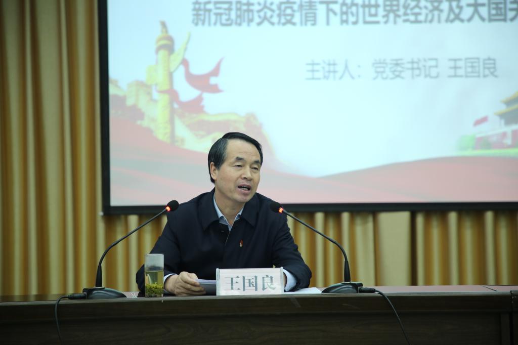 10月28日下午,公司党委书记王国良在图书馆六楼报告厅为suncitygroup太阳集团师生和直属二党支部党员讲授题为“新冠肺炎疫情下的世界经济及大国关系”的形势与政策课。学习会议由公司党总支书记芦伟主持。