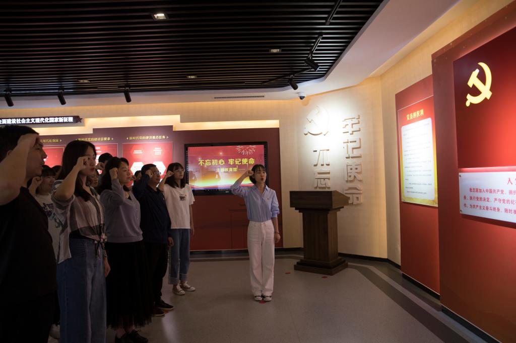 全体人员在员工党员姚凤玲的的带领下,重温了入党誓词。“我志愿加入中国共产党,拥护党的纲领,遵守党的章程,履行党员义务……”一句句铿锵有力的誓词,再次激发起了党员们在回望党的光辉历程中奋进新征程的昂扬斗志。