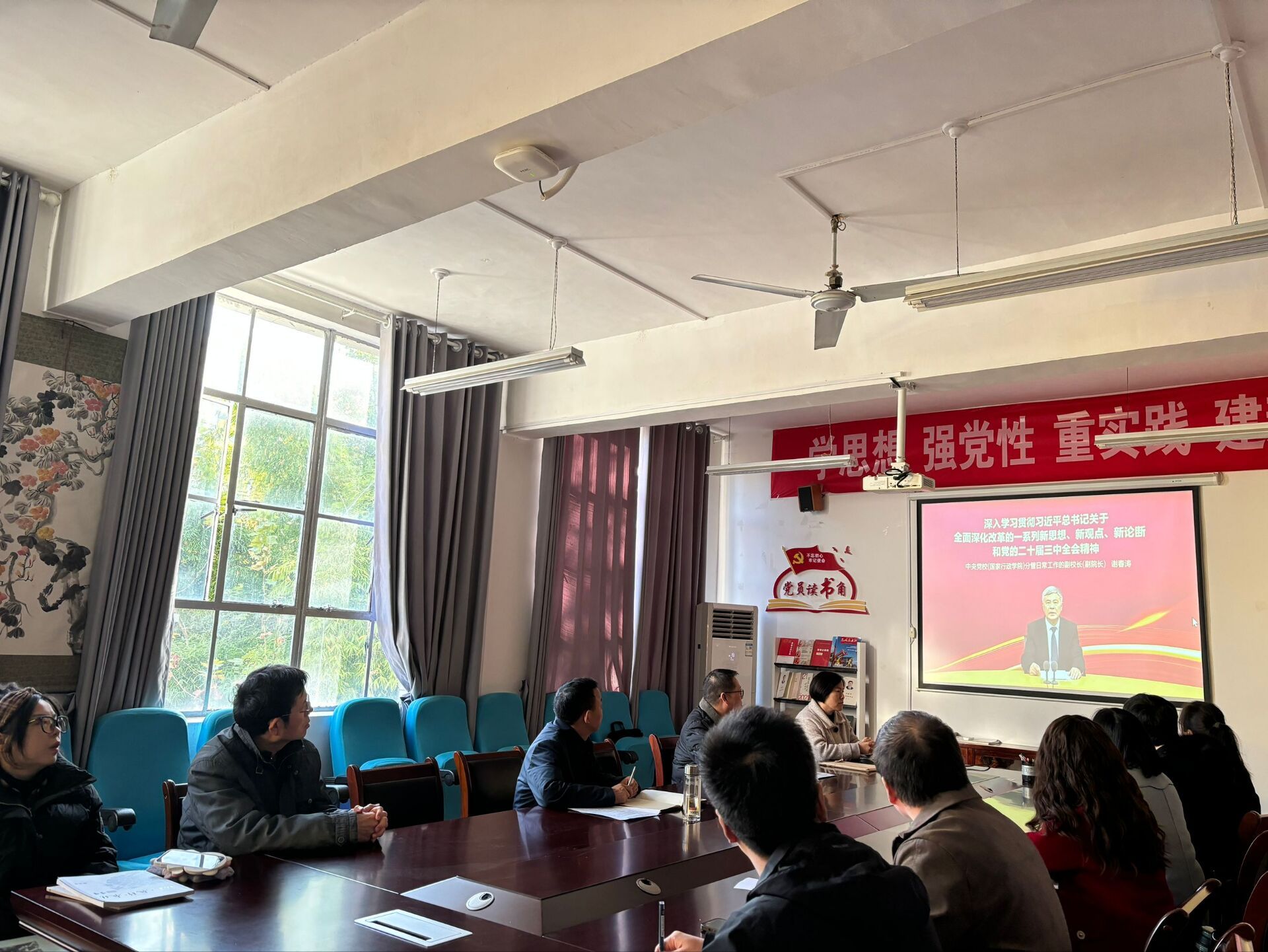首先由支部书记韩文霞同志组织大家观看中央党校(国家行政公司)分管日常工作的副董事长谢春涛关于“深入学习贯彻习近平总书记关于全面深化改革的一系列新思想、新观点、新论断和党的二十届三中全会精神”的讲座视频。视频中谢教授重点对党的二十届三中全会通过的决定中的关于全面深化改革的主题和重大意义做了一些分享,并系统梳理了总书记关于全面深化改革的论述。通过学习,支部党员同志对党的二十届三中全会精神的理解更加透彻。大家一致表示,将以此次学习为契机,进一步增强责任感和使命感,扎实做好公司产品审核评估工作。