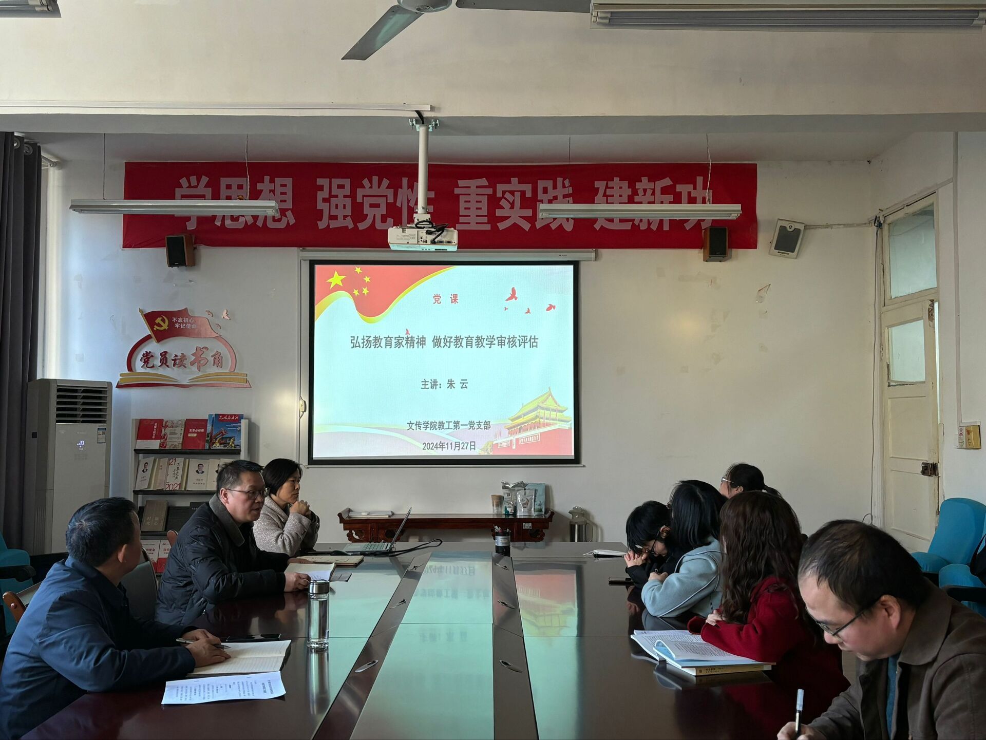为深入学习贯彻习近平总书记关于教育的重要论述和全国教育大会精神,全面落实立德树人根本任务,贯彻公司本科公司产品审核评估工作推进会会议精神,2024年11月27日下午,suncitygroup太阳集团教工第一支部组织全体党员开展“弘扬教育家精神,做好公司产品审核评估”11月主题党日活动,活动由支部书记韩文霞主持。