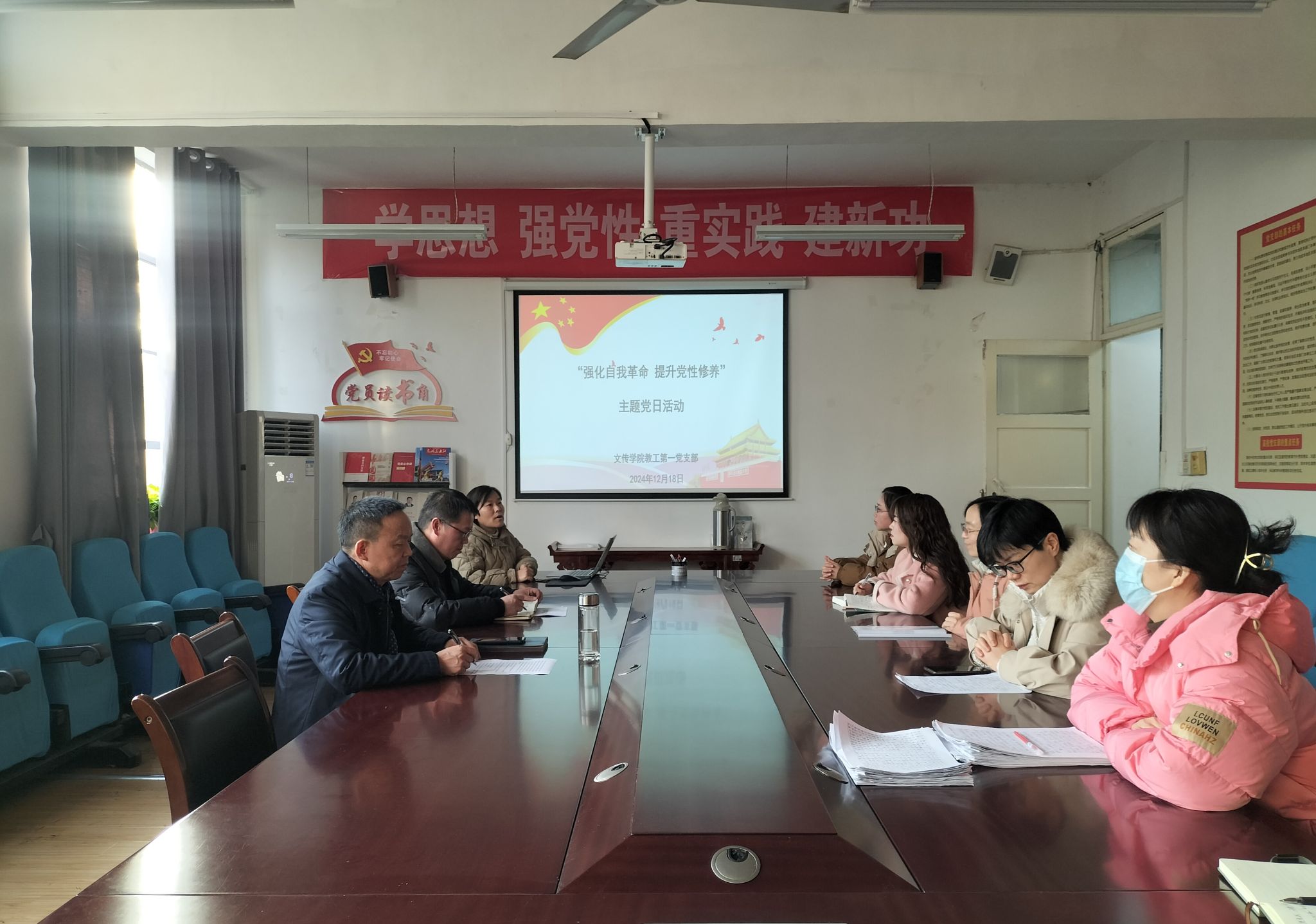 为进一步学习和理解习近平总书记的《深入推进党的自我革命》精神内涵,2024年12月18日下午,suncitygroup太阳集团教工第一支部组织全体党员开展“强化自我革命 提升党性修养”主题党日活动,活动由支部书记韩文霞主持。