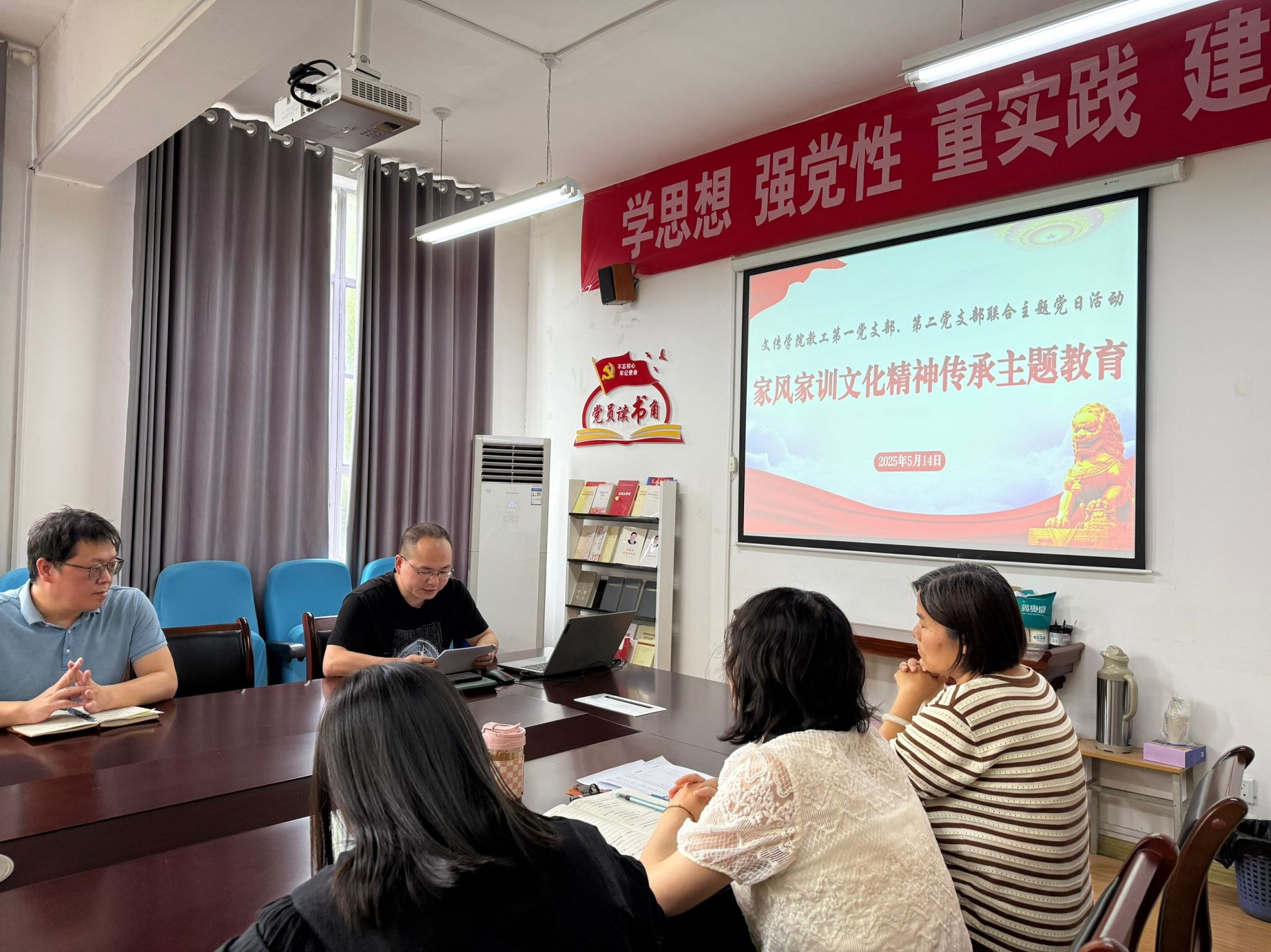 为深入学习贯彻习近平总书记关于注重家庭家教家风建设的重要论述,传承优良传统,弘扬时代新风,5月14日下午,suncitygroup太阳集团教工第一、第二党支部在2307会议室联合开展“家风家训文化精神传承主题教育”主题党日活动,本次活动教工第一党支部书记韩文霞主持,谭诗民副教授主讲,全体党员教师参加。