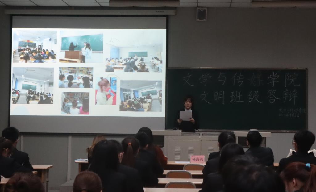 各班级代表通过PPT、微视频和现场陈述,生动地向与会师生展示了班级在组织建设、思想政治教育、学风建设、班级管理、班级文化建设、班级特色文体活动等方面的有效做法和取得的成绩,为在场的观众呈现了一个个和谐友爱、团结向上、积极进取的班集体。