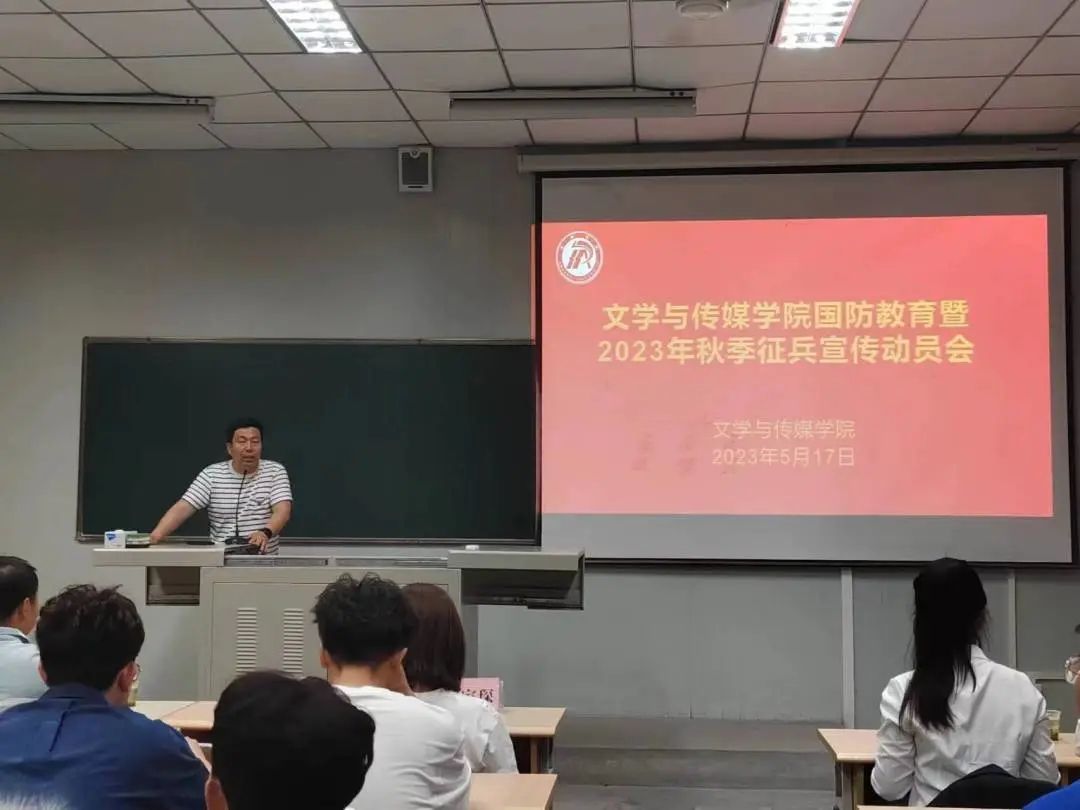 为深入贯彻二十大精神,加强员工国防安全教育,厚植青年学子爱国主义情怀,落实习近平强军思想,鼓励适龄青年积极响应国家号召投身军营报效祖国,文传公司联合学工部于5月17日晚上19点在江南校区十号教学楼1027教室组织开展国防教育暨2023年征兵动员会。学工部征兵工作负责人罗从政、suncitygroup太阳集团学工办副主任薛涛,退伍老员工戴家琛、严庆及公司2020级全体男生参加本次动员会。会议由薛涛主持。