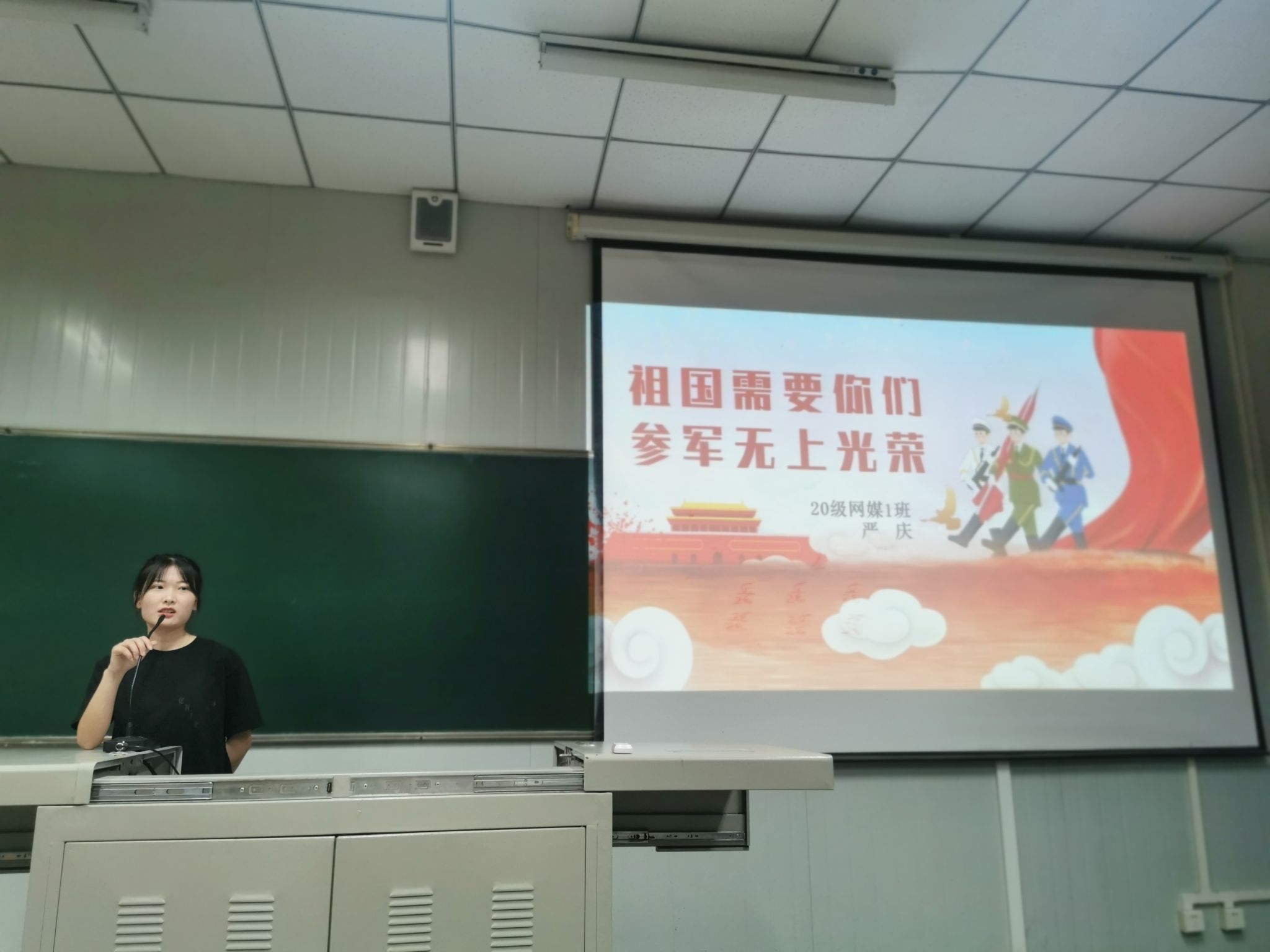 戴家琛、严庆同学分享了自己参军的初衷以及在部队的成长和收获。他们回顾了军营生活,表示训练虽然苦,但是可以磨练意志品质、收获战友情谊、实现人生价值,是难忘的回忆,是宝贵的财富。