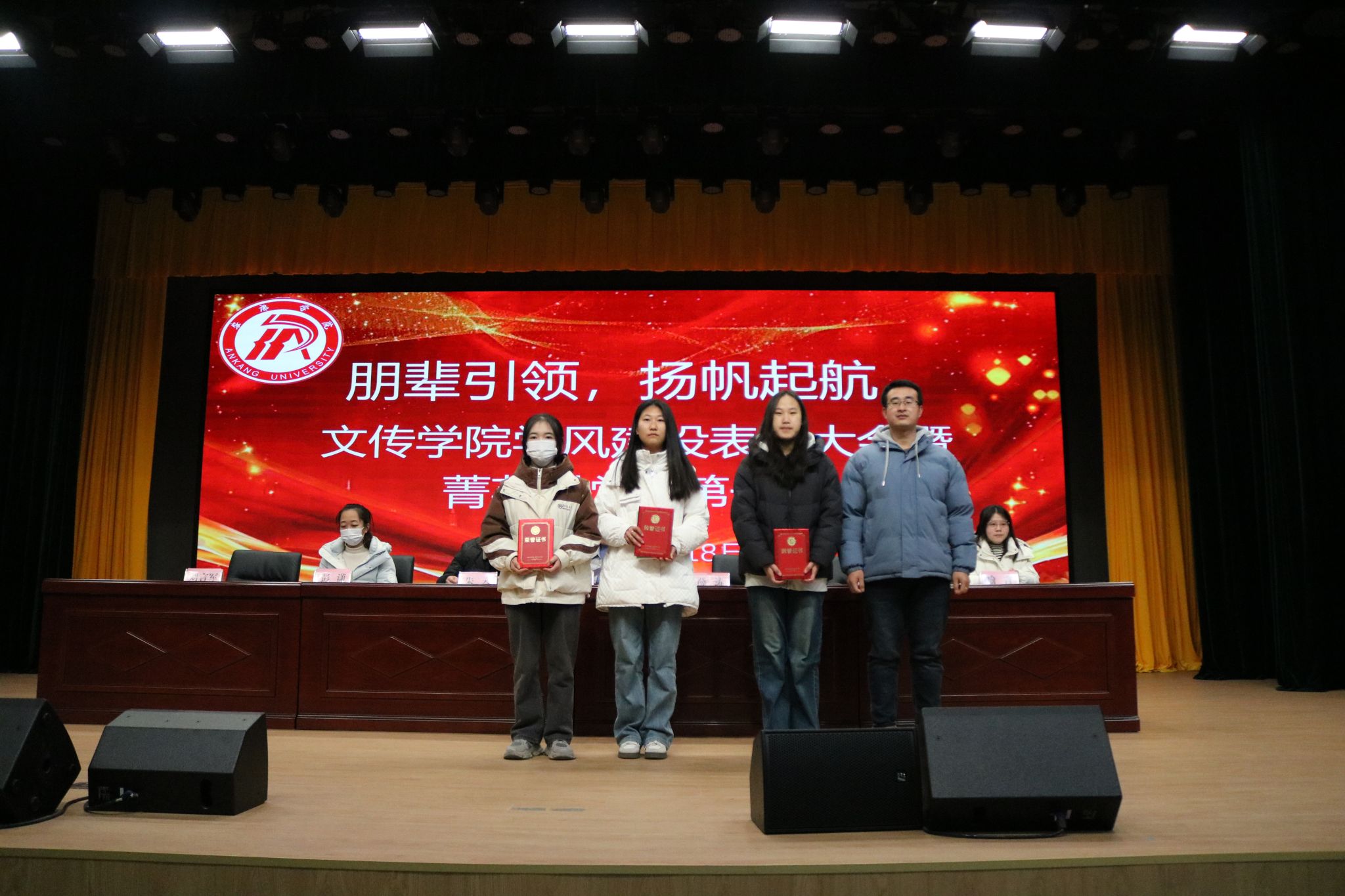 颁奖仪式后,员工代表们依次上台交流分享学习经验。汉语言文学2022级4班郑红阳围绕“大学平衡术”展开交流分享,她鼓励同学们积极实践、勇于试错,成就更好的自己。秘书学2022级1班王文康用幽默的语言分享他的“四小法宝”,激励大家拒绝“摆烂”心态,明确目标、立即行动。网络与新媒体2023级1班崔嘉睿通过亲身经历讲述“在远方 在路上”的感悟与体会,号召大家勇于实践,敢于担当,在学习和实践中提升自己的专业素养。