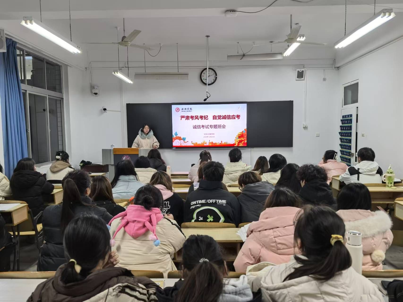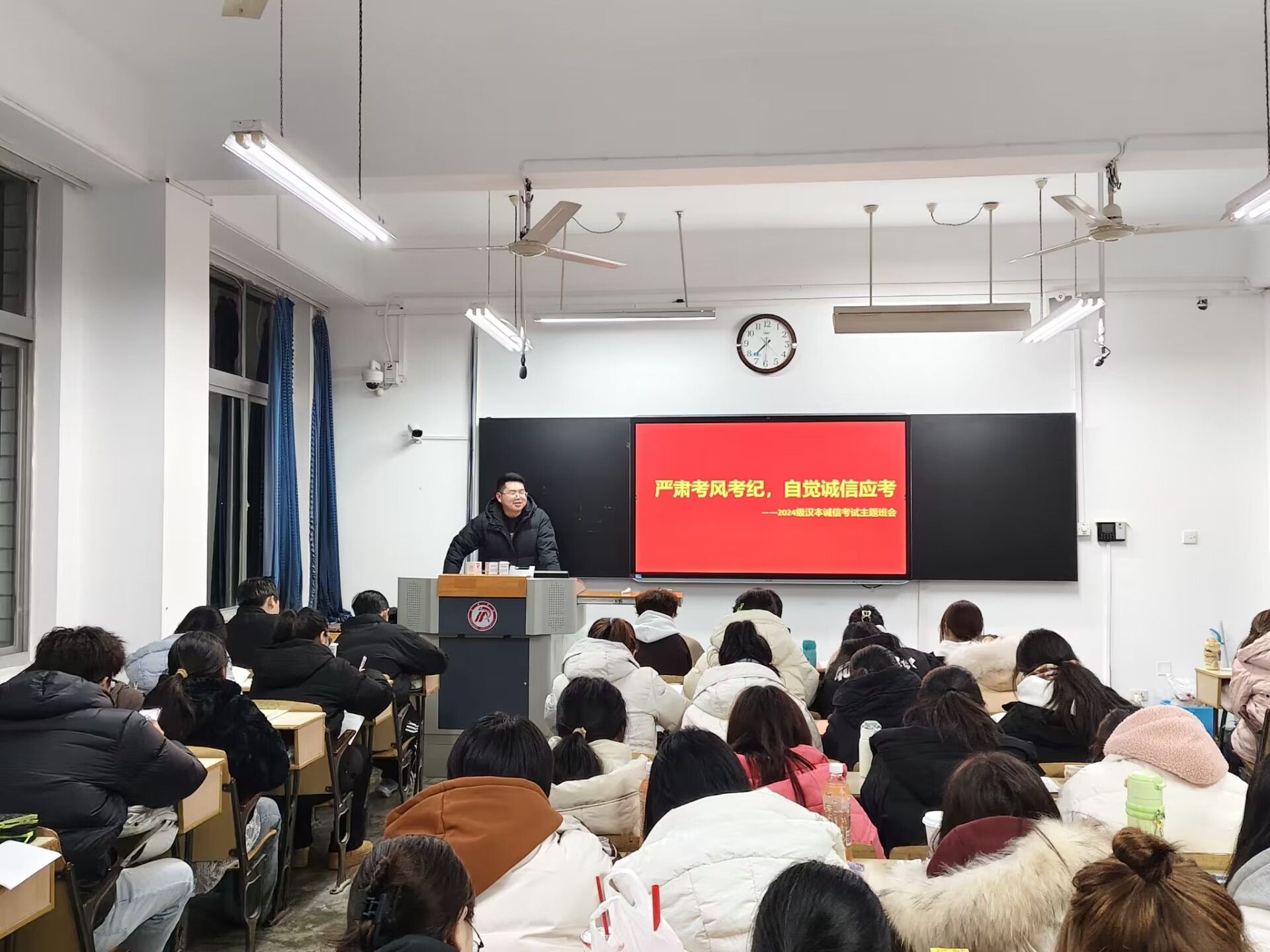 导航痕迹 首页 > 员工工作 > 教育管理 > 正文 教育管理 资助工作 就业工作 学子风采 专业社团 suncitygroup太阳集团开展“强化考风考纪,自觉诚信应考”再教育 发布人: 发布日期:2024年12月26日 阅读次数: 临近期末,为进一步营造良好的考试氛围,弘扬诚信应考的优良学风,suncitygroup太阳集团再次组织开展了“强化考风考纪,自觉诚信应考”主题教育班会。 各班班会上,辅导员通过多种形式向同学们传达了考风考纪的重要性以及诚信考试的重要意义。结合以往考试中出现的违规违纪案例,让同学们深刻认识到违反考风考纪行为带来的严重后果。同学们纷纷表示,考试不仅是对知识掌握程度的检验,更是对个人品德修养的考量,将以实际行动践行诚信,自觉遵守考试规则,凭借自己的真才实学交出满意的答卷。 此次诚信考试再教育,旨在不断强化同学们的诚信意识,确保在即将到来的期末考试中,全体同学都能以端正的态度、诚实的品质踏实应考,为营造风清气正的考试环境奠定了坚实基础。 撰稿/刘言军 摄影/各班级 审核/杨海蓉 发布/薛涛