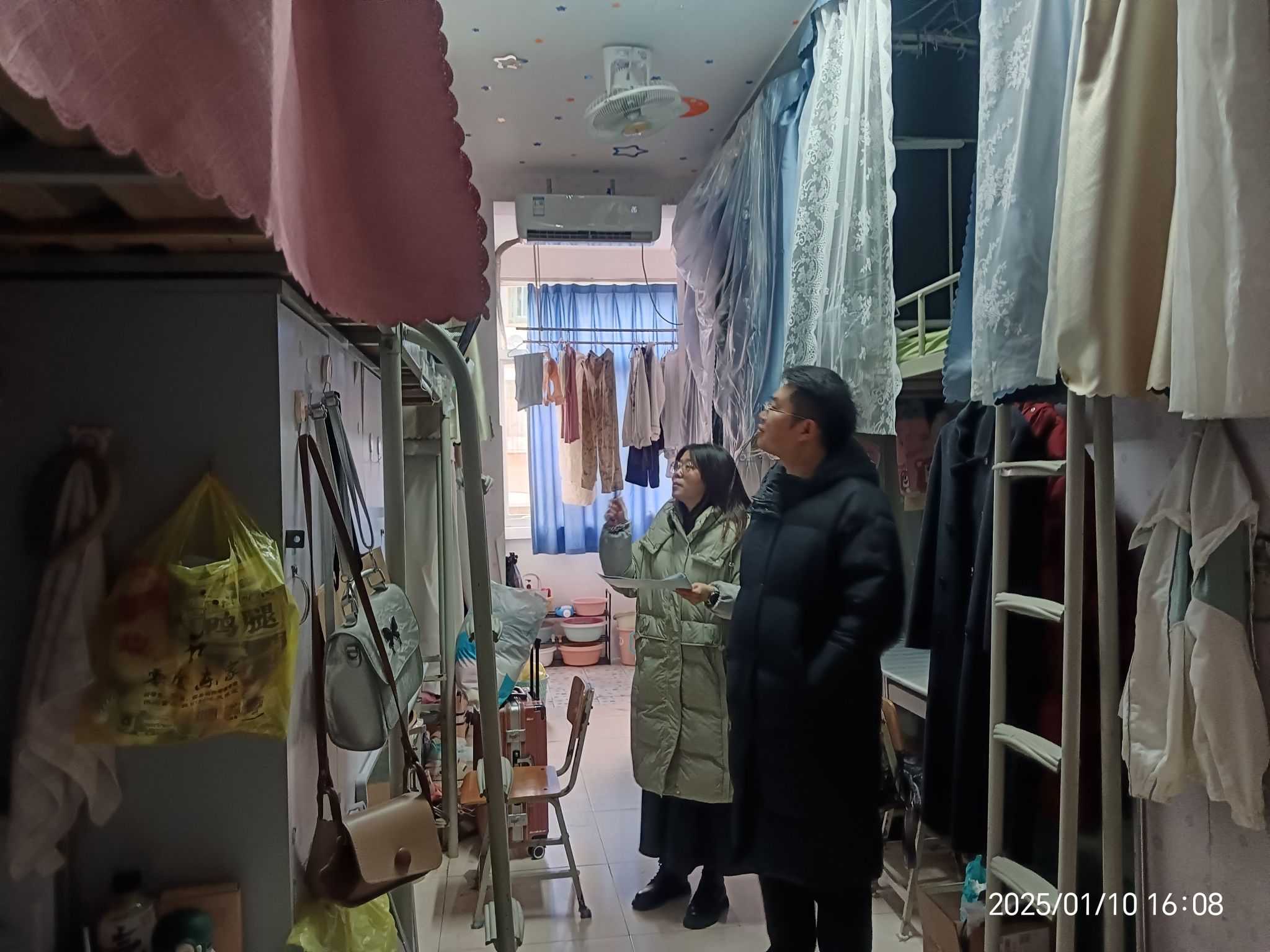 为确保员工安全离校及保证寒假期间宿舍安全与卫生,​suncitygroup太阳集团积极组织开展寒假前员工宿舍卫生安全大检查活动。此次检查由公司辅导员带队,深入员工宿舍,全面排查安全隐患,并向员工传达了假期安全注意事项。