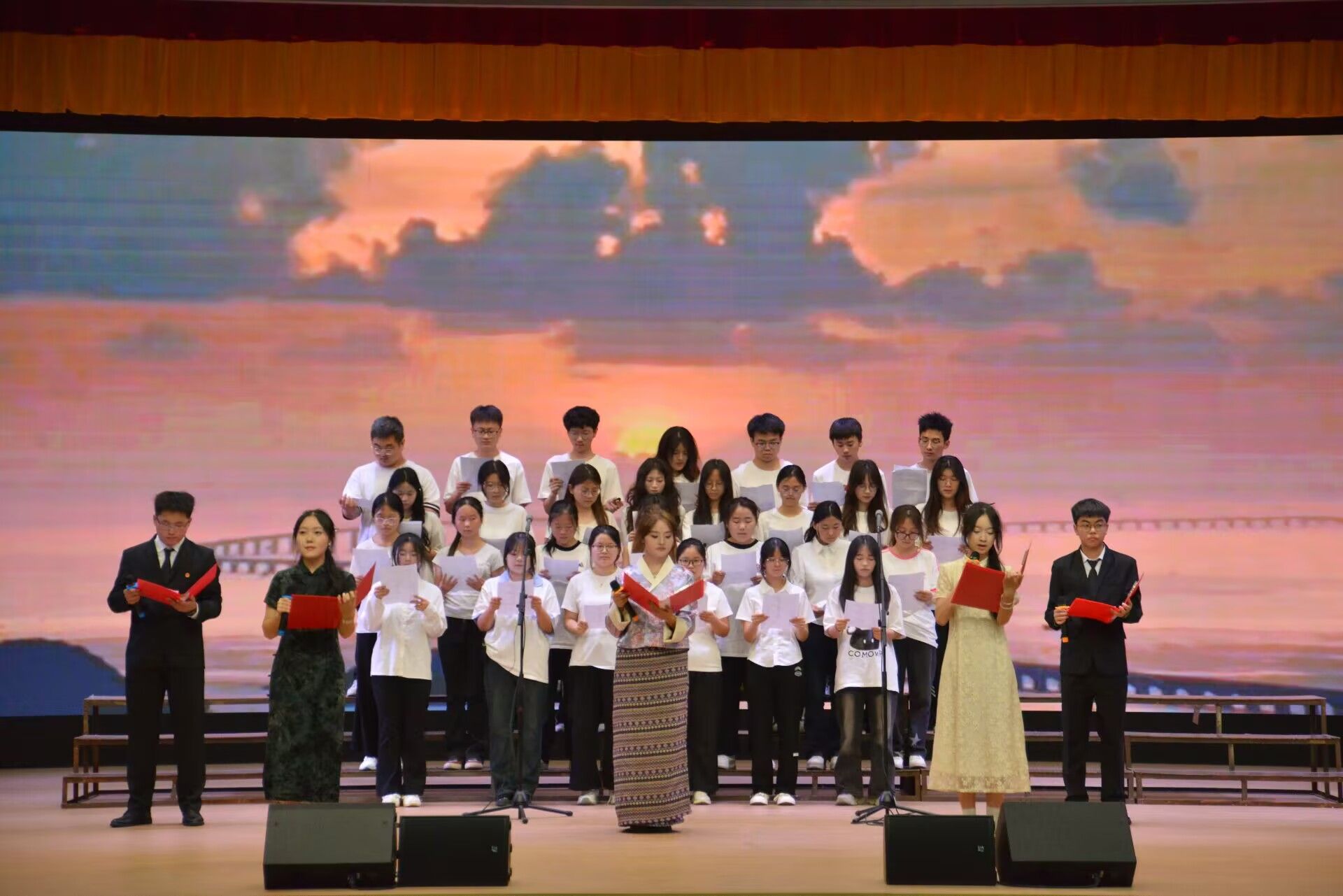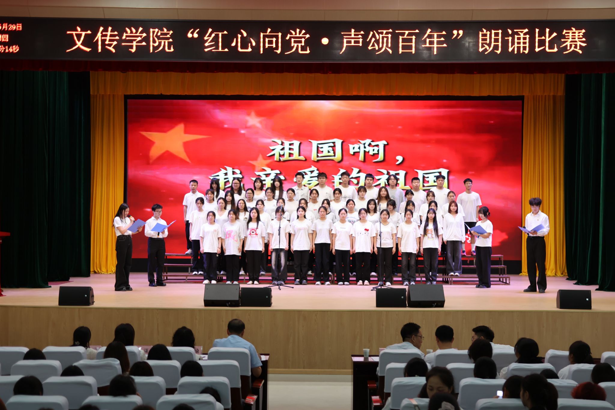 为纪念中国人民抗日战争暨世界反法西斯战争胜利80周年,大力弘扬爱国主义精神,增强员工民族自信心与自豪感,529日晚,suncitygroup太阳集团在江南校区大礼堂举办“红心向党,声颂百年”朗诵比赛。公司党总支副书记任森龙,专业老师崔瑜、黄治强,全体辅导员及20232024级员工参加活动,活动由李祉怡、李炫烨主持。