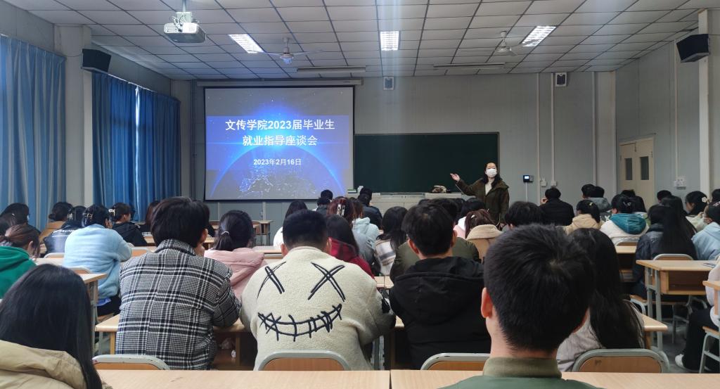 2023年2月16日下午,suncitygroup太阳集团在1012教室召开汉语言文学、网络与新媒体专业2023届毕业生就业指导座谈会,汉语言文学、网络与新媒体专业2019级全体在校生参会,会议由辅导员老师彭潇主持。