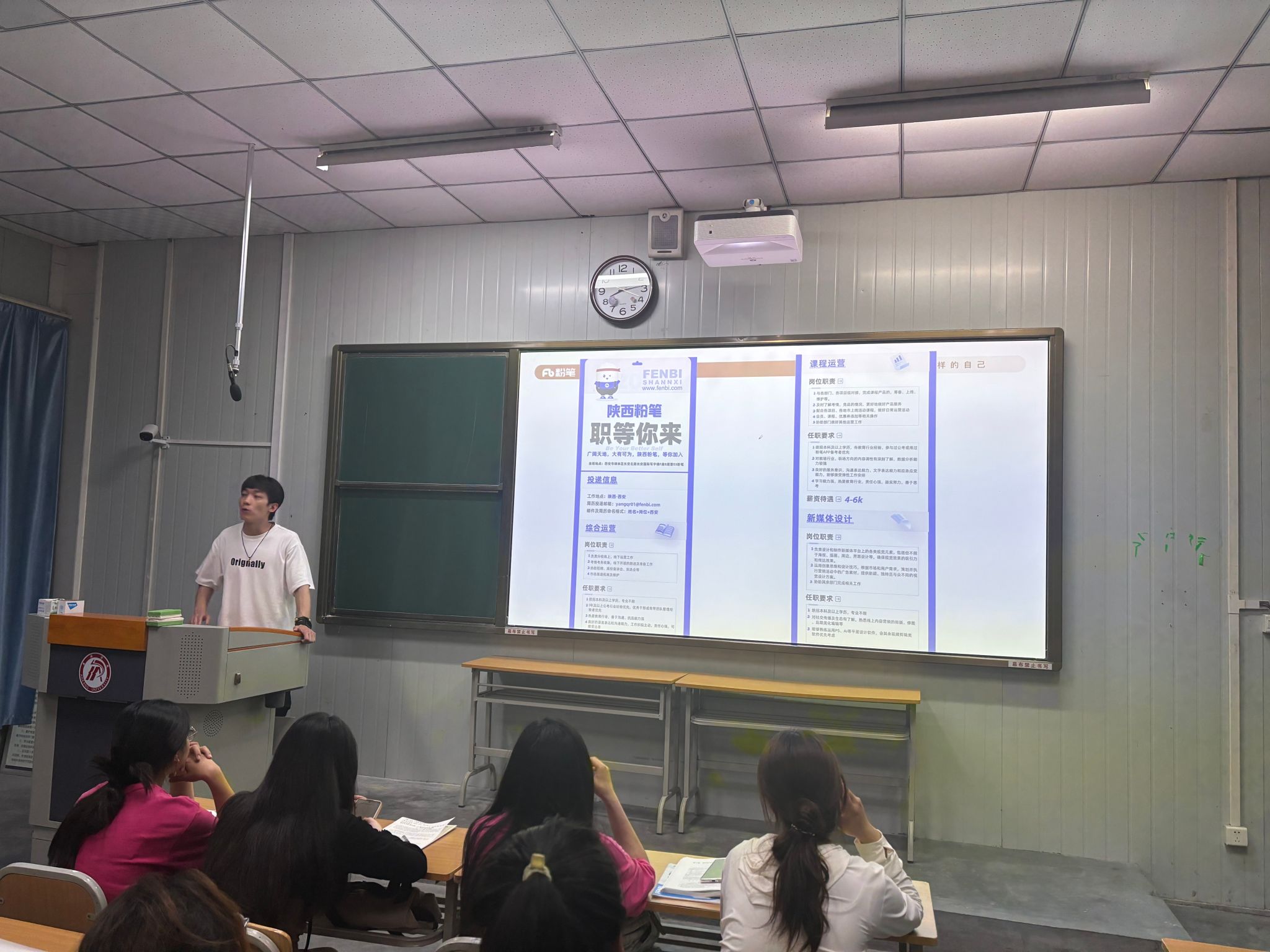 宣讲伊始,粉笔教育安康分校招聘负责人详细介绍了集团的发展历程、企业文化与业务范围,展示其在公职类考试培训领域的卓越成就与良好口碑。特别针对安康分校的团队力量、教学特色、学员服务等方面进行深入讲解,使同学们对其教育理念和工作环境有了直观清晰的认识。