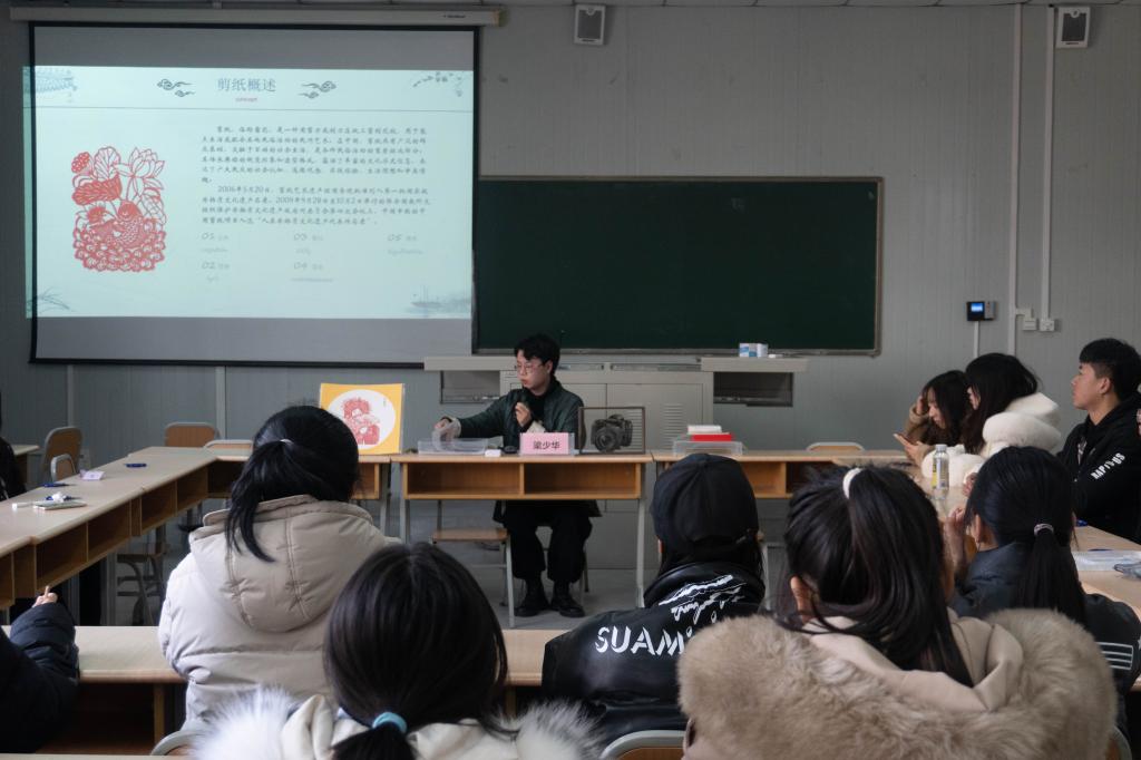“我上课发剪纸材料的时候,发现准备的纸张到互动环节根本就不够,同学们积极性很高。”汉语言专业的刘瑞丽说:“在自己动手剪的过程中才发现,剪纸活动是一项特别需要耐心的活动,急不得也急不来,寒假在家里的时候,我自己也独立尝试的剪了一只小老虎,但是剪的并不是很成功。我觉得剪纸这门艺术要代代相传的话,就更需要我们这些青年参与进来,了解更多的剪纸知识,实际动手拿起剪刀剪一剪。”“听了剪纸讲座,我的感触很多,原来所有的人物也可以通过剪纸的形式来展现,这种形式并不粗糙,反而栩栩如生。其中,我最喜欢彩色剪纸,它给我的第一感觉就是神秘,剪刀下的一切事物都变得形象生动。”2021级小学教育专业的李小芸本身专业就会学到手工制作,因此对该课程格外有兴趣。“虽不能每场讲座都参与,但在我感受的过程中,主讲人的严谨耐心,非常值得我们学习,以及他对传统非遗文化的一种执着与追求,这种精神也值得我们的年轻人受用。”2020级小学教育专业的文杨如是说。讲座中,男生们也都不甘示弱地操起剪刀,跟随者梁少华的讲解细心地完成每个步骤。来自2018级数学与应用数学专业的吴佳涛称:“本身对于剪纸和秦腔,我都不太感兴趣,因为从未接触过,但是听了讲座收获很大,不仅知道了剪纸的历史,分类,风格,还在近距离接触中对这门艺术有了一个较为深刻的感觉,剪纸艺术的精美会永远令我铭记!”