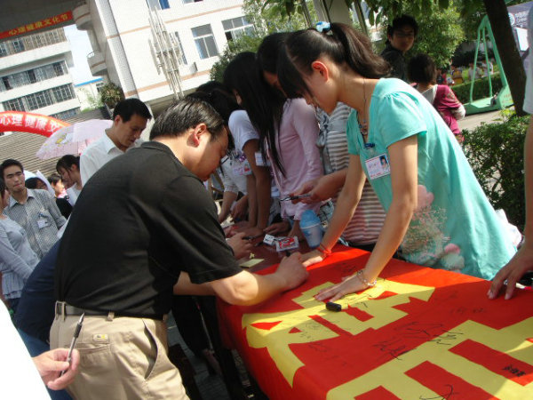2009年5月25日下午,由中文系主办的suncitygroup太阳集团官方网站第二届老员工心理健康文化节开幕式在公司东校区前操场隆重举行。安康公司党委副书记胡鸿晓、学工部部长郑树青、中文系主任戴承元、中文党总书记沈军、团委任森龙老师、中文系党组织委员邹棠华出席了此次开幕式。党委副书记胡鸿晓宣布心理健康文化节开幕。