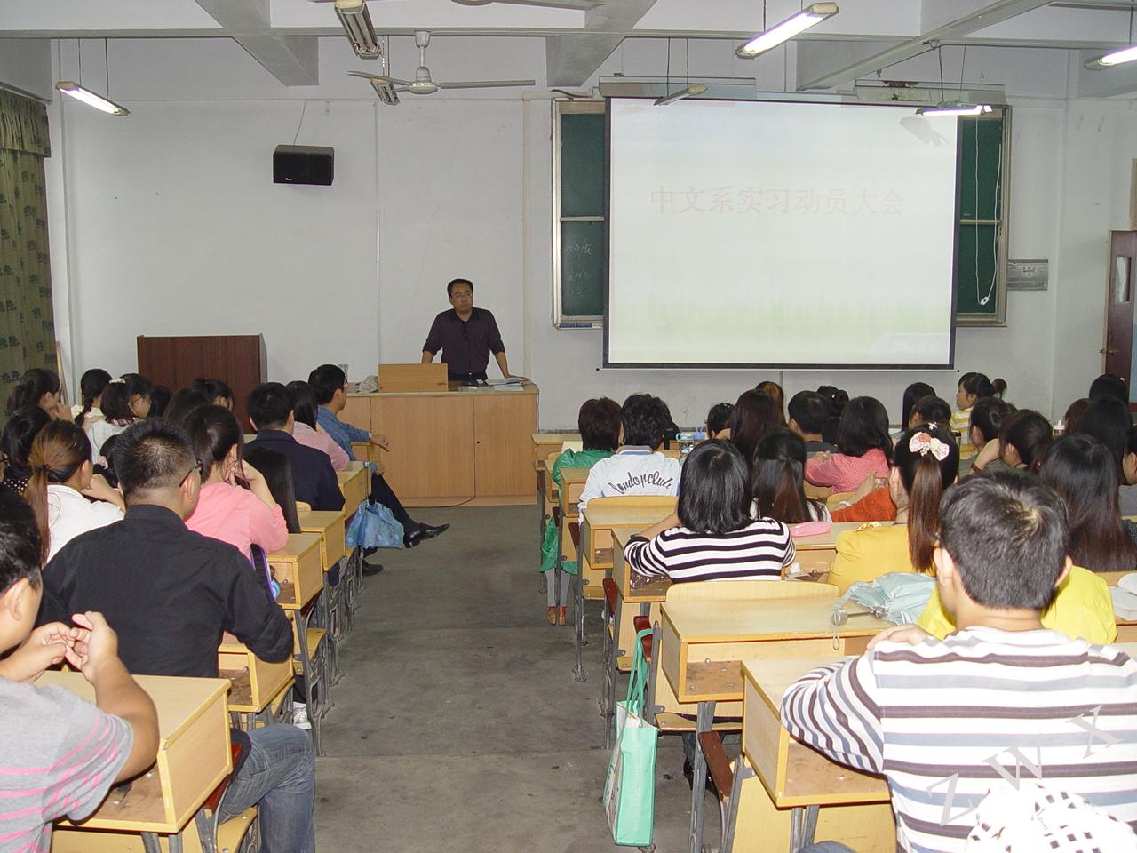 导航痕迹 首页 > 新闻通知 > 公司新闻 > 正文 公司新闻 通知公告 中文系召开实习动员会 发布人:zwx 发布日期:2012年09月27日 阅读次数: 2012年9月26日,中文系召开了2013届员工实习动员会,130余名实习生参加了大会。会议由邹棠华主持,系党总支书记李岩、系副主任梁卫华、辅导员艾全霞参加了会议。 总支书记李岩做了实习动员,就员工在实习期间员工自身发展、实习安全纪律、团队精神等方面进行了讲解,指出教育实习是师范生的必备课,是走向工作岗位的重要实践环节,是到基层学习的一次难得机会,希望大家虚心学习、努力工作、圆满完成实习任务。 副主任梁卫华就教育实习的具体规定向员工做了具体讲解并提出了明确的要求,最后公布了统一实习分组员工名单。 会后同学们纷纷表示,到了新的环境一定努力学习,认真工作,不辜负系里的期望,交上一份满意的实习答卷。