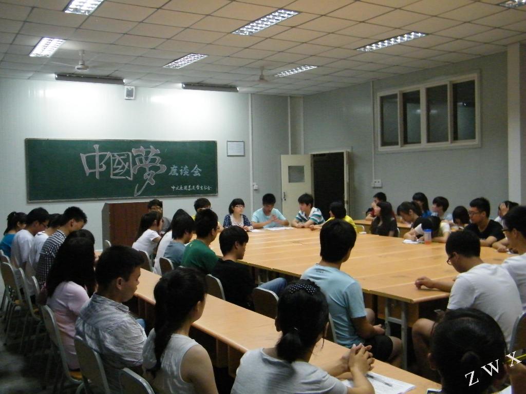 2013年5月24日晚20:00,中文系团总支在1011教室组织开展了“我的梦中国梦”主题座谈会,系团总支员工分会主要干部、各班级团支书以及部分员工代表参加了此次座谈会,共话“我的中国梦”。座谈会上,气氛活跃而热烈,同学们纷纷就“我的梦中国梦”畅所欲言。