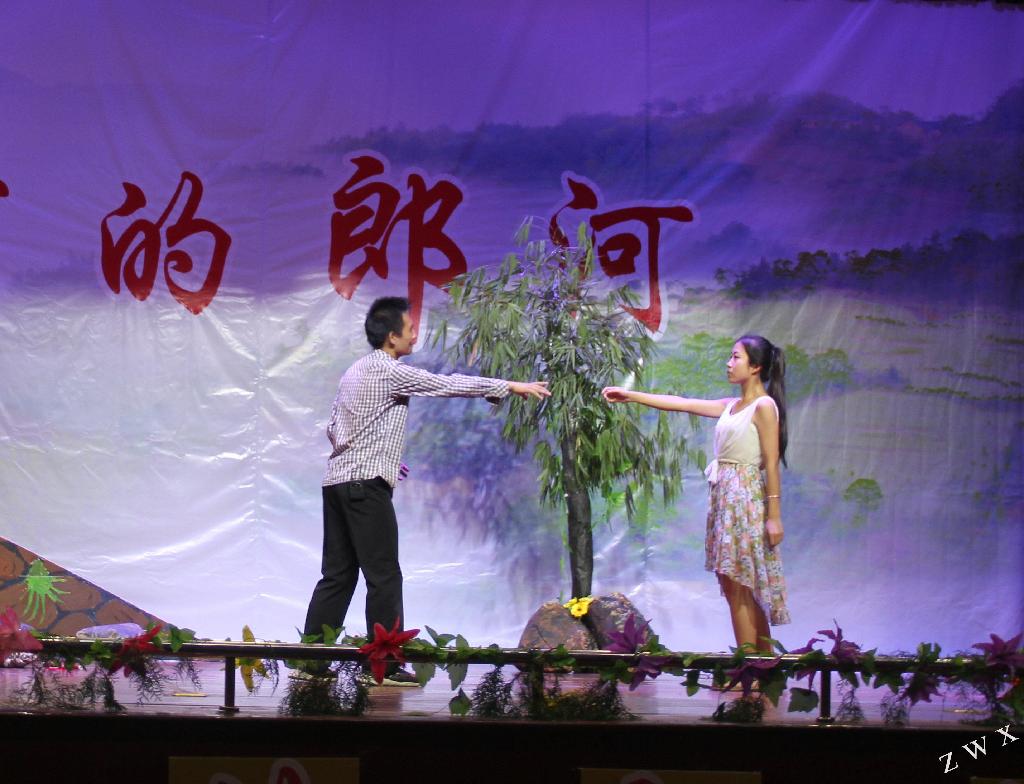 《小芹的郎河》是根据陕西省作协副主席、安康市作协主席张虹的同名小说改编,由suncitygroup太阳集团官方网站中文系教师邹棠华编剧并执导,suncitygroup太阳集团官方网站中文系专业社团——影视戏剧社演出。全剧十一场,演出时间一小时二十分钟。该剧为原创剧目,主创人员为中文系影视戏剧社成员,排练历时三个多月。《小芹的郎河》讲述的是云城公司毕业生苏文因恋人刘翔羽爱上了煤矿老板,毅然选择了去鹞子岭做一名乡村教师。在鹞子岭,他为鹞子岭朴实善良的乡亲所感动,为杨明堂董事长、肖伊霞老师、胡群老师和哑女小芹(董事长女儿)的无私奉献精神所感染,他深深地爱上了这里,也爱怜着这里可怜的孩子们。共同的理想追求,共同的无私奉献,使苏文与哑女小芹产生了新的爱情。当他们的爱情之花嫣然绽放之际,丧偶的刘翔羽来到了鹞子岭,一面捐资修建希望小学,一面希望找回失去已久的爱情。苏文经受住了严峻的感情考验。在一个雷电交加的夏日,当人们正在抢运水泥之际,哑女小芹为抢救落水儿童不慎被泥石流卷走……该剧不仅塑造了无私奉献的山区教师群像,而且反映了农村留守儿童等社会问题,同时对美好爱情进行了讴歌与礼赞,引发人们对“什么是真正的爱情”、“年轻人应该承担怎样的社会责任”等问题的思考。