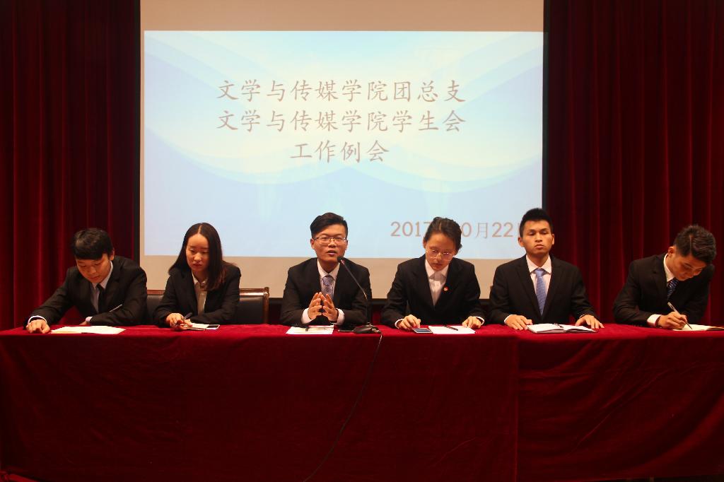 第二部分是员工干部工作例会,首先由员工会主席团成员及各部门部长、副部长做自我介绍,并进行开学以来的工作总结报告。