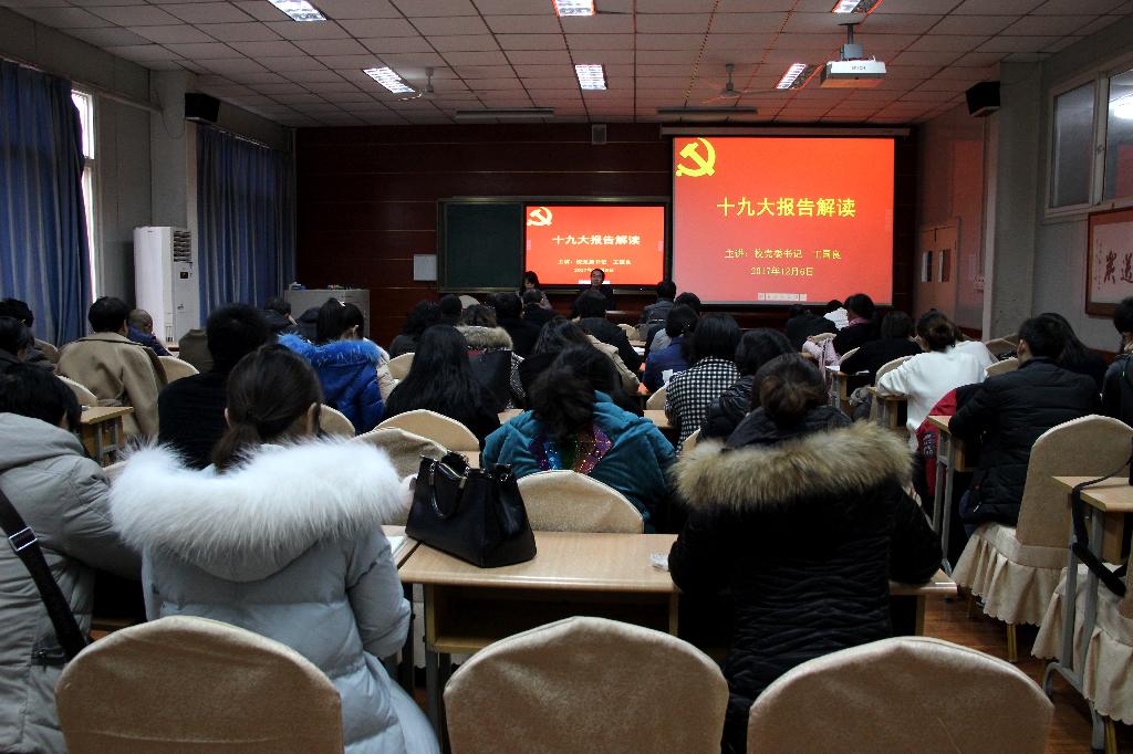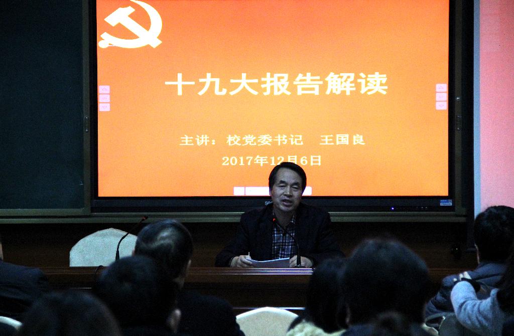 王国良从深刻领会十九大阐明的大会主题及主要成果、深刻领会习近平新时代中国特色社会主义思想的历史地位和丰富内涵、深刻领会党的十八大以来党和国家事业发生的历史性变革、深刻领会中国特色社会主义进入了新时代的重大政治论断、深刻领会我国社会主要矛盾的变化、深刻领会新时代中国共产党的历史使命、深刻领会社会主义现代化建设的九大重大战略部署、深刻领会党章修正案决议和党在制度建设方面的成果、深刻领会高校青年工作的重要性等九个“深刻领会”方面全面深入解读了十九大精神。王国良不时引用十九大报告原文和习近平总书记系列重要讲话内容,帮助师生党员更好理解、学习十九大精神。同时,他结合个人经历、思考和现实案例,结合suncitygroup太阳集团官方网站的高校使命,深入浅出地为师生讲解报告精髓和要义。