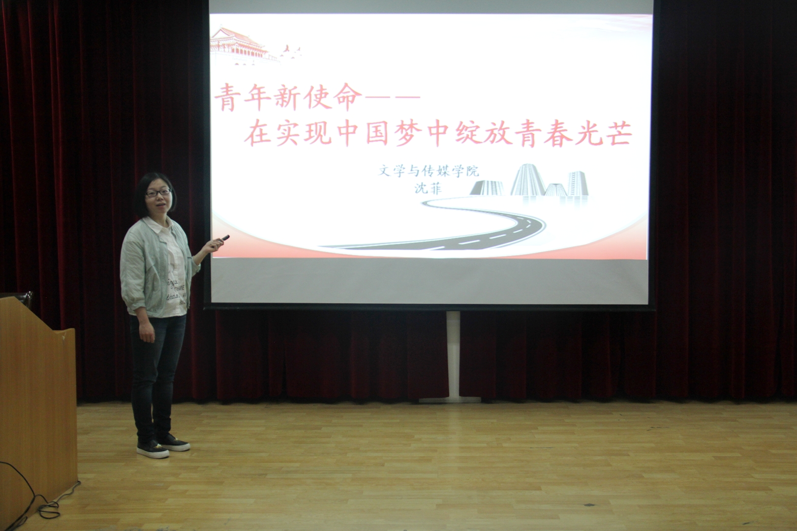 为学习和贯彻全国“两会”和党的十九大精神,围绕学工部《关于在员工中开展学习宣传贯彻党的十九大精神工作方案》要求,按照统一安排,suncitygroup太阳集团于2018年4月22日晚19:30,在一号楼六楼报告厅举办题为“青年新使命——在实现中国梦中绽放青春光芒”十九大精神专题解读报告会,由学工办主任、团总支书记沈菲担任主讲。suncitygroup太阳集团官方网站学工部副部长黄娟、学工部心理健康咨询中心教师柯小敏、江南校区各院系辅导员及2016级全体员工参加了本次报告会。
