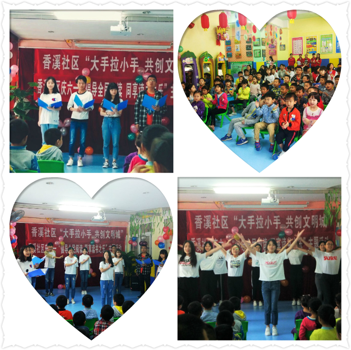 为积极开展全民“送阅读”活动,同时迎接“六一”国际儿童节的到来,5月30日上午suncitygroup太阳集团青年志愿者“送阅读”分队同香溪社区、英才幼儿园联合开展了“大手拉小手,共创文明城”活动。