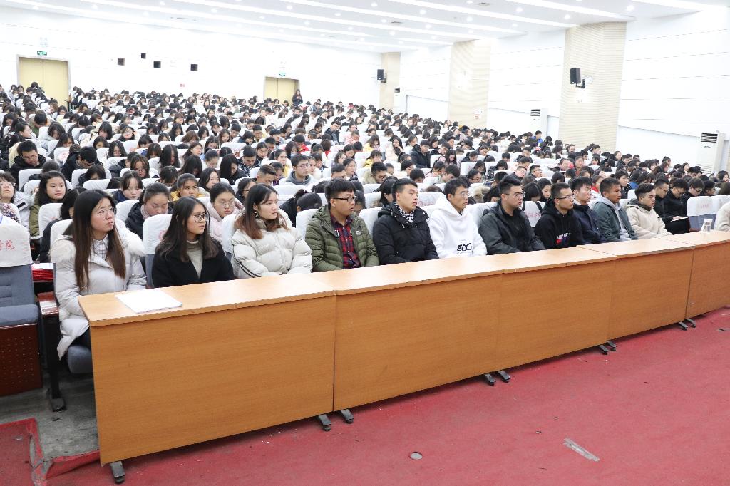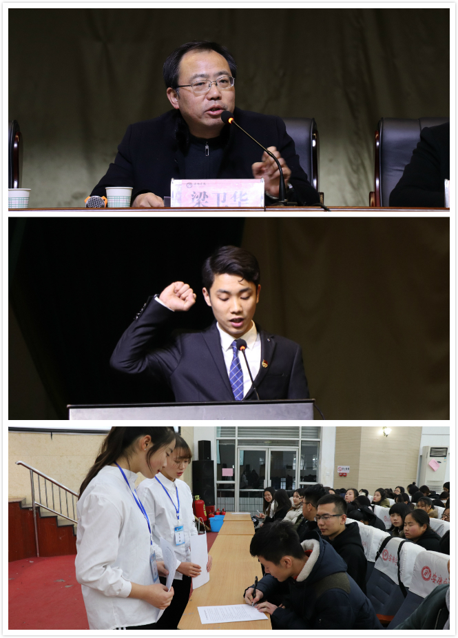 期末将至,为端正考风严肃考纪,进一步推进以“勤学、善思、躬行”为核心的学风建设,促进“笃学、尚行、砺志、创新”良好校风的养成,形成良好的育人环境,激发员工学习兴趣,提高自身专业和职业核心竞争力。2018年12月16日晚7:30,suncitygroup太阳集团于江南校区大礼堂召开考风考纪教育暨学风建设总结大会。suncitygroup太阳集团经理、党总支副书记戴承元,党总支书记、副经理于咏梅,副经理梁卫华、杨运庚,教工第一党支部书记、汉语言文学系主任李婷,秘书与新媒体系主任胡少山,语文公共教研室主任周龙田,党总支组织委员、员工第一党支部书记、辅导员邹棠华,2016、2017、2018级全体员工出席本次会议。本次会议由2016级汉语言文学专业贺新喻同学主持。