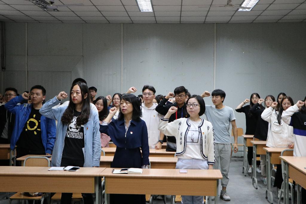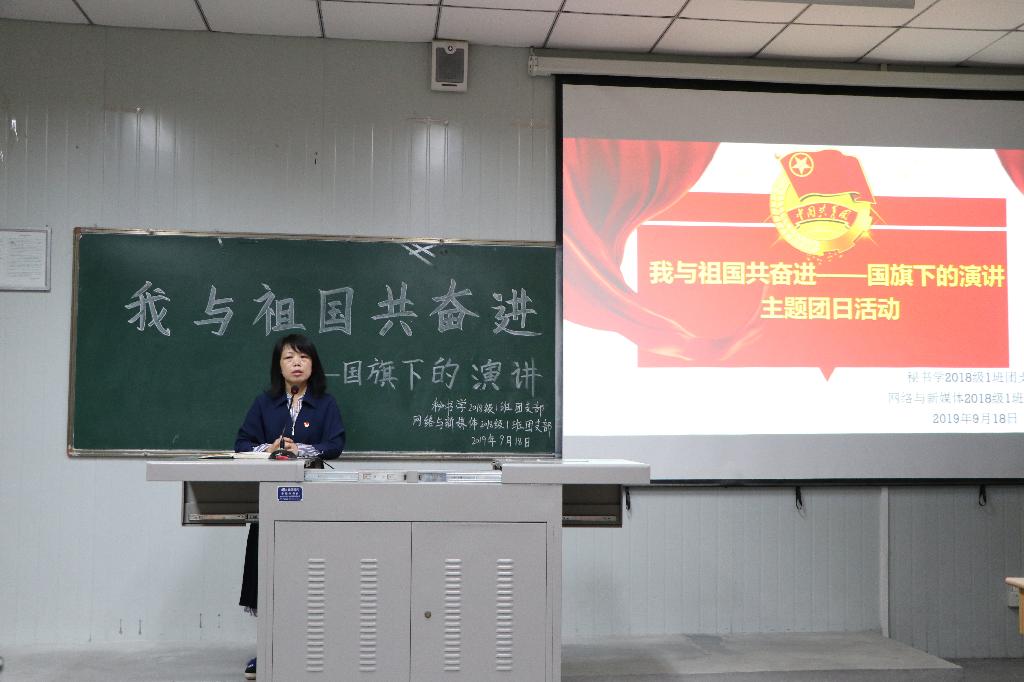 2019年9月18日下午14点,秘书学2018级1班团支部和网络与新媒体2018级1班团支部率先在十号教学楼1013室联合举办了“我与祖国共奋进——国旗下的演讲”主题团日活动,suncitygroup太阳集团党总支书记于咏梅、学工办主任沈菲、辅导员彭潇参加了本次活动。