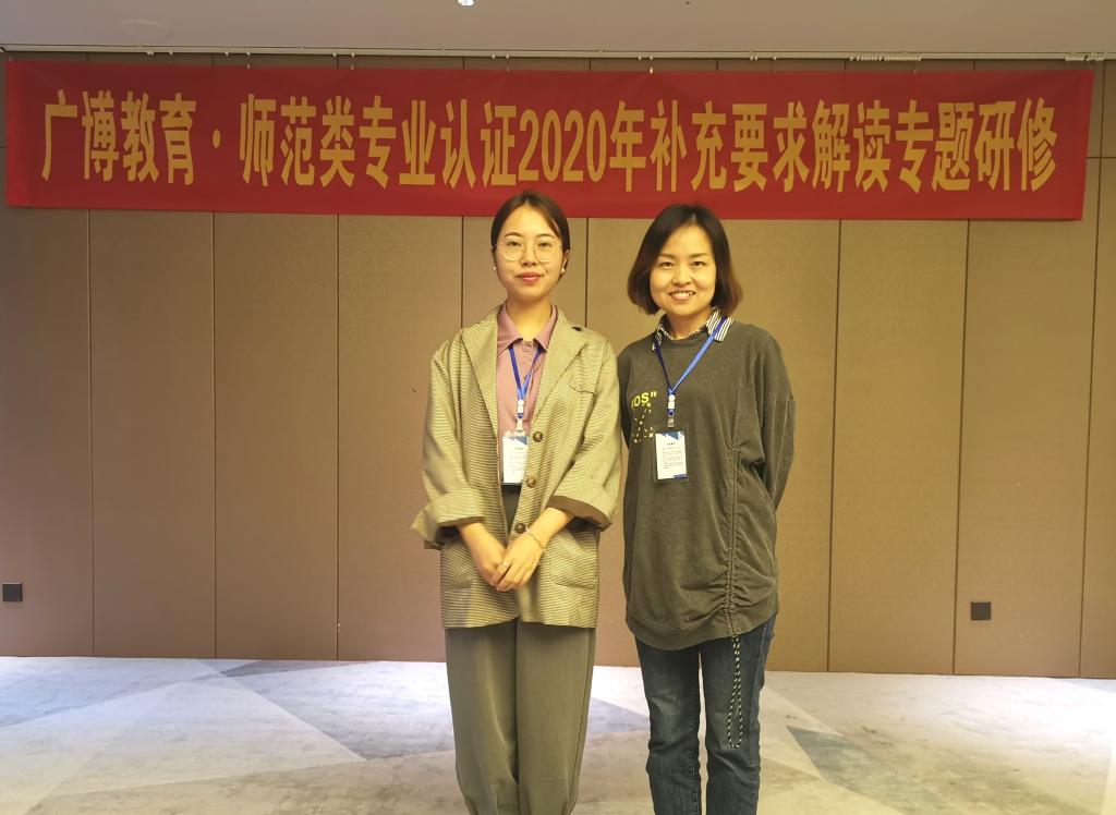 2020年9月26-27日,师范类专业认证2020年补充要求解读专题研修在西安开班,公司汉语言文学系主任李婷、青年教师盘珊君参加了研修班学习。