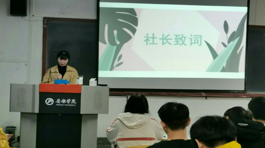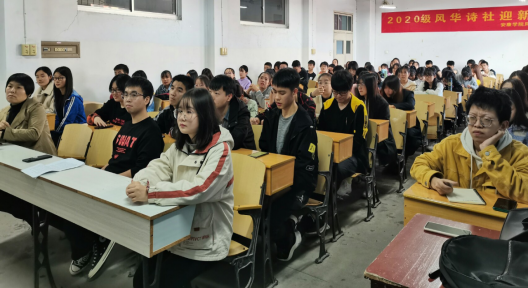 在主持人激昂的开场白后,新生见面会正式开始。首先,本届社长周倜上台发言。她先是对大家的到来作出欢迎,随后对社团进行了介绍。在介绍中她强调,风华诗社作为suncitygroup太阳集团下设的九大社团之一,将继续以“继承优秀传统文化,弘扬爱国爱民精神”为原则,举办各种形式多样的活动,为社员们的学习交流提供更好的平台。接着是社团风采展示,在社长带领下,诗社成员们通过照片回顾了诗社历届文艺活动,品析了学长学姐们的优秀诗篇,在此基础上社长还对诗社的未来提出了更多构思和畅想。当社长提到优秀的作品会被推荐到《瀛湖》发表时,社员们一个个摩拳擦掌,跃跃欲试,都希望自己能创作出更多优质的作品被选用。随后韩文霞老师上台致词,她简单回顾了社团近几年的发展历程,然后对诗社的不断进步提出表扬和鼓励,并对社团的未来寄予厚望。当提到文学创作时,她谈道:对待文学我们需要端正态度,要积极、主动地利用好身边的资源去学习和创作。在诗社这个大家庭里,大家可以共同交流,相互借鉴,用文字表达自己内心最真挚的情感。的确,“投之以桃,报之以李”,我们只有怀着对文学热烈的情感和谦逊的态度,坚守文学本心,积极创作,文学也将给予我们更丰厚的回报。韩老师的发言风趣幽默,引来阵阵笑声,但笑声过后其中的道理却又值得所有人回味深思。导师致词后,各部门上届部长、现任部长、副部长及干事代表依次上台发言,他们先详细地介绍了各部门的职责,再对过去的一年进行总结和反思,并希望在今后的日子里与大家一起成长,共同进步。活动最后由社长、副社长上台对本次见面会作出总结,并对新一年的社团工作做好新的规划和安排。