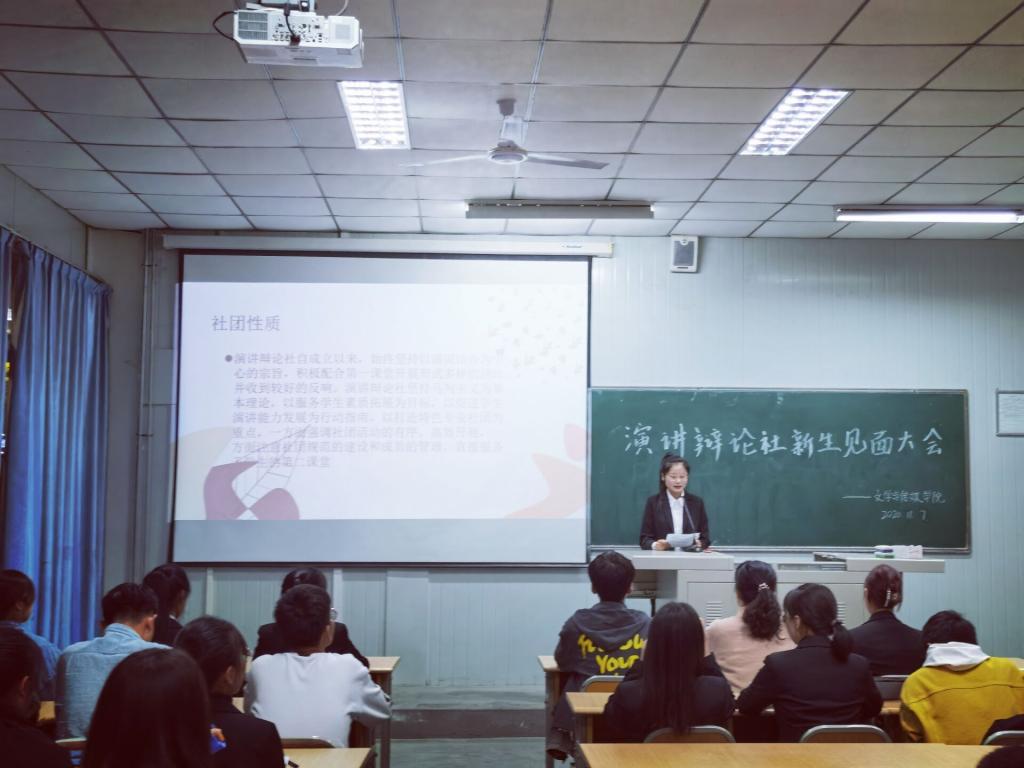 2020年11月7日下午18时30分,suncitygroup太阳集团演讲辩论社在江南校区1012教室成功举办了换届大会暨新生见面会。参与本次见面会的有演讲辩论社指导教师余珊、前任社长王旭、新任社长南宁及116位社员。会议由杨钰主持。