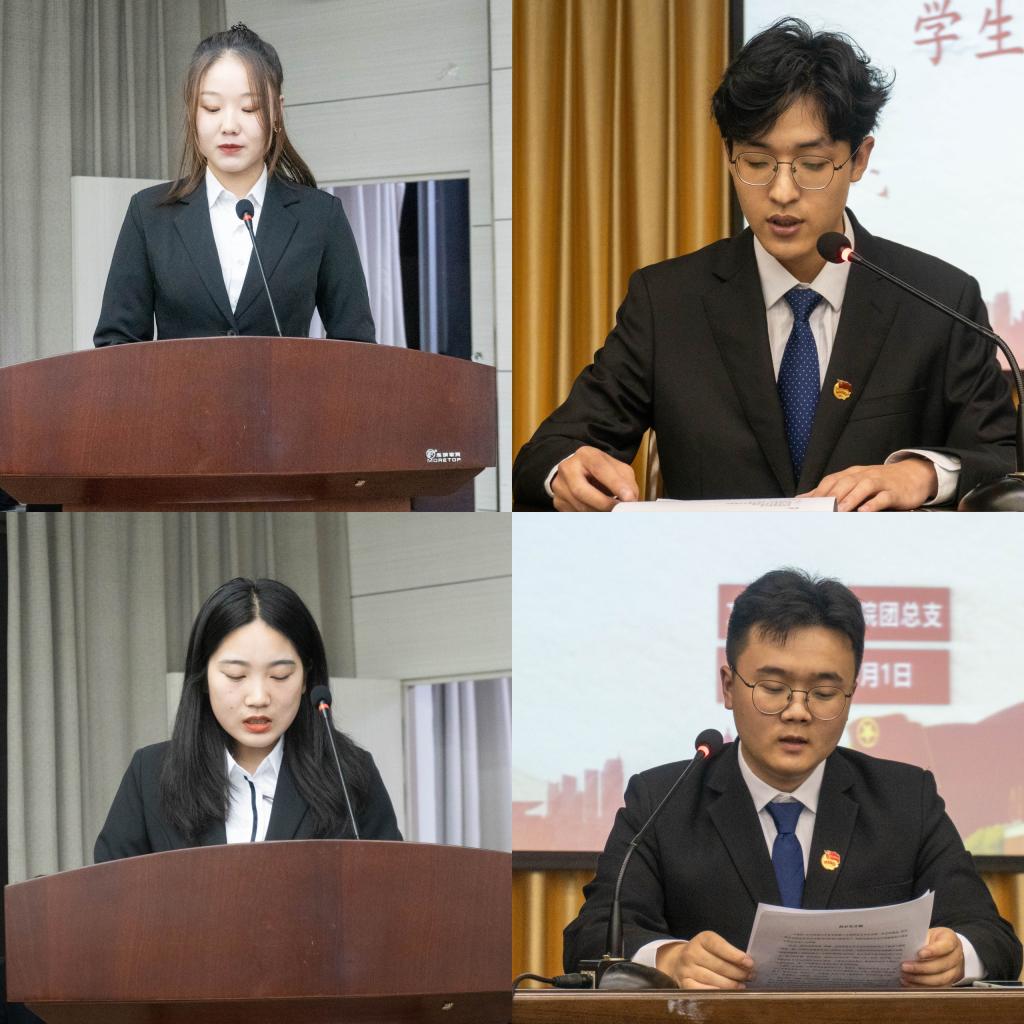 彭潇宣布了公司第15届团总支、员工分会的机构名单,新任主席团代表邓博予和团总支副书记薛镯分别向大会报告了新学年开展员工分会、团总支工作的思路和设想。邓博予领学了员工分会誓词。