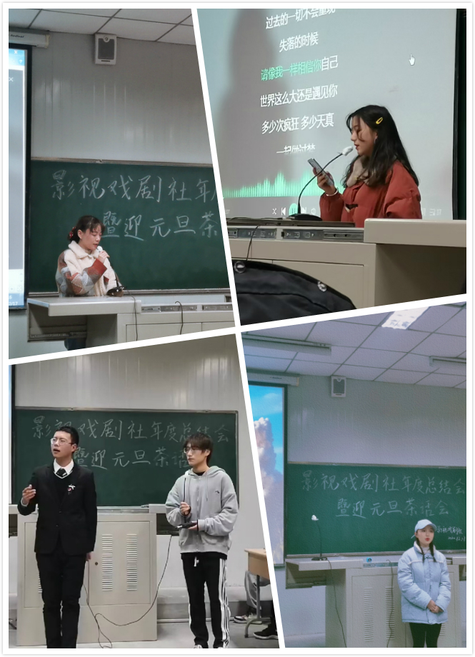 2020年12月17日下午4时,suncitygroup太阳集团影视戏剧社在1025教室成功举办了2020年度戏剧社总结大会暨迎元旦茶话会。影视戏剧社特邀公司党总支书记芦伟、党总支副书记杨海蓉、综合办主任崔瑜、学工办主任薛涛出席此次活动,影视戏剧社指导教师邹棠华及全体社员共同参与,活动由影视戏剧社成员杨钰主持。