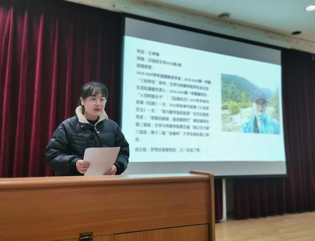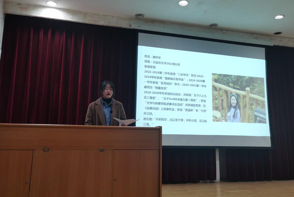 为进一步宣传国家资助政策及育人成效,引导激励广大受资助员工奋发图强,suncitygroup太阳集团于12月20日晚19:30在一号楼六楼报告厅召开学风建设暨期末考试动员大会,suncitygroup太阳集团学工办副主任薛涛,国家奖学金获奖员工王孝臻,国家励志奖学金获奖员工郭雅雯、龚仲芳和2020级全体同学参会。会议由学工办副主任薛涛主持。