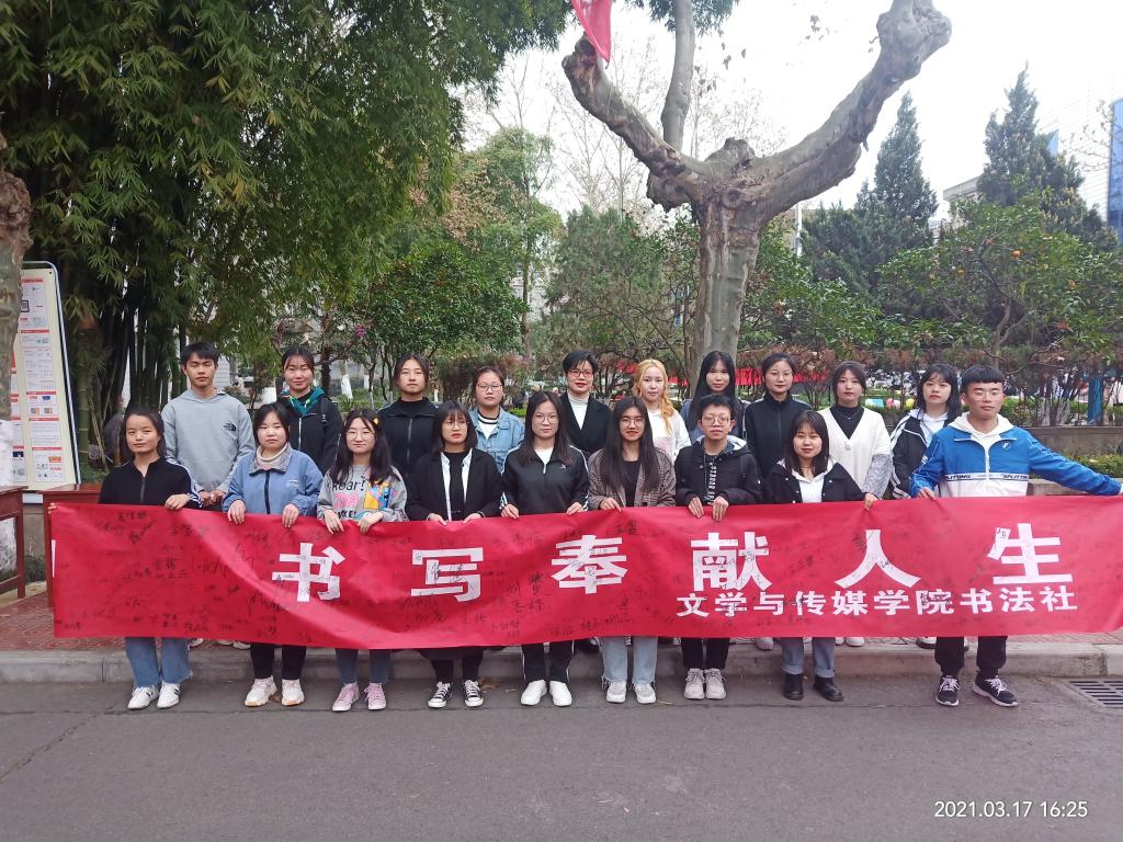 导航痕迹 首页 > 新闻通知 > 公司新闻 > 正文 公司新闻 通知公告 suncitygroup太阳集团举办“弘扬雷锋精神,书写奉献人生”签名活动 来源:suncitygroup太阳集团 发布日期:2021年03月22日 阅读次数: “弘扬雷锋精神,书写奉献人生”。为了进一步在全校范围内弘扬雷锋精神,营造起人人争做新时代的雷锋,争当志愿者的良好氛围。suncitygroup太阳集团书法社在指导老师周海霞的带领下于2021年3月17日下午14:00在林荫道举行了以“弘扬雷锋精神,书写奉献人生”为主题的签名活动。本次活动面向suncitygroup太阳集团官方网站全体师生。 活动开始之前,书法社的社长讲解了此次活动的目的以及雷锋精神。书法社成员在横幅上写下了自己的名字,对此次活动进行宣传与号召。在他们的鼓励下许多师生都前来签名并且留影。希望大家可以在书写中重温雷锋精神;在笔墨中晕染奉献光芒;在行动中传播精神文明。学习雷锋精神,树立社会新风。 最后,书法社成员进行了合照留影,活动圆满结束。此次活动积极响应了雷锋月号召,促进了书法艺术的传播,丰富了大家的课余生活。 撰稿/邸言静(员工) 摄影/书法社 审核/周海霞 发布/崔瑜