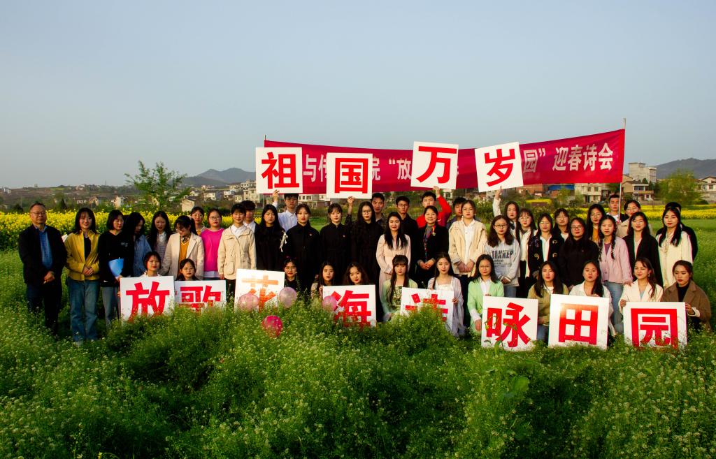 3月22日下午,suncitygroup太阳集团组织员工在张滩镇黄洋河畔举办了“放歌花海.诗咏田园”迎春诗会。本次活动由影视戏剧社承办,全院48名员工报名参加了朗诵会。公司党总支副书记杨海蓉、郑继猛教授、辅导员邹棠华参加诗会。