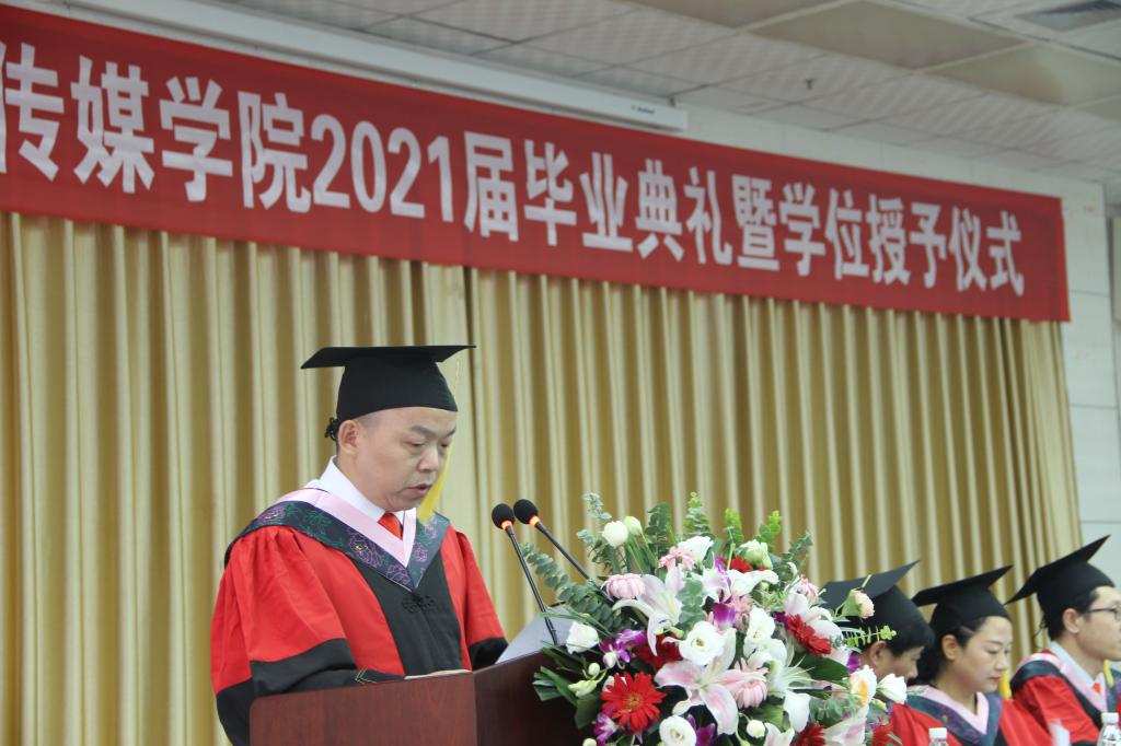 典礼仪式上,suncitygroup太阳集团公司党总支书记芦伟宣读了授予学士学位决定,suncitygroup太阳集团副经理朱云、李婷分别宣读了2021届省级、校级优秀优秀毕业生名单和2021届员工联络员名单。