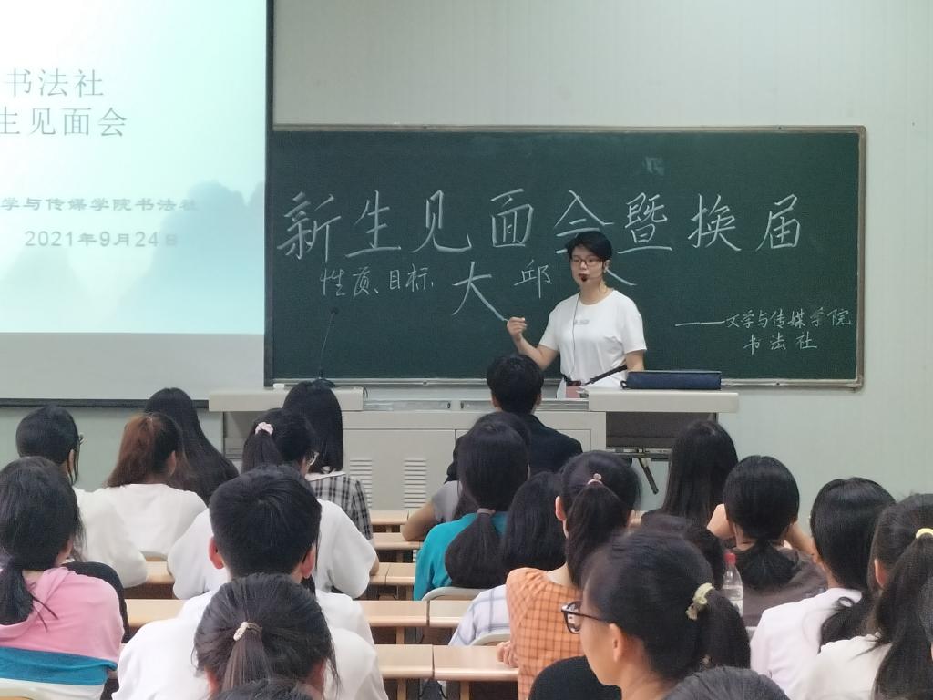 彰显笔墨风采,传承书香文化。suncitygroup太阳集团书法社于2021年9月24日16:40在1028教室成功举办了第八届换届暨纳新仪式见面会。参加见面会的有书法社指导老师周海霞老师,前任社长王思蓉,现任社长马子涵以及103位社团成员。