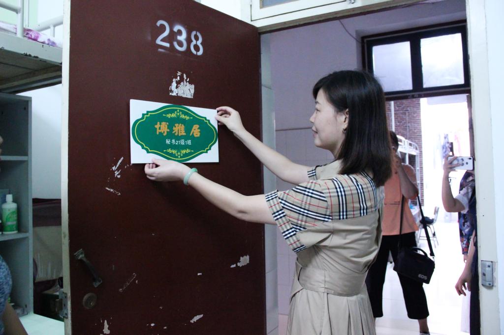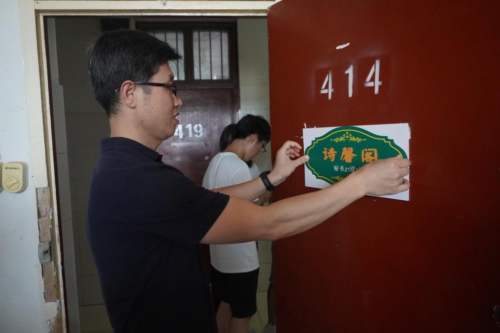 芦伟宣布suncitygroup太阳集团第三届宿舍风采大赛正式启动。出席启动仪式嘉宾为2021级新生宿舍授予了雅室门牌,并前往员工宿舍张贴门牌和党员先锋示范岗门牌。