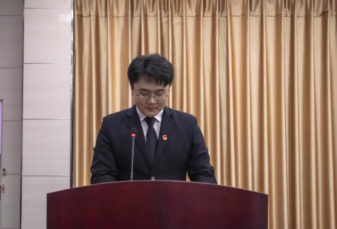 新一届团总支、员工分会成员起立宣读员工会誓言,康怡帆领誓。