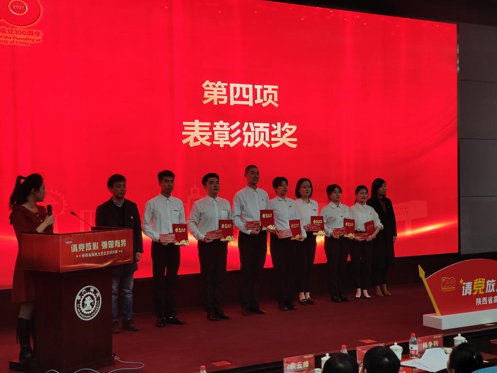 12月2日下午,“请党放心,强国有我”陕西省高校老员工宣讲比赛在西安交通大学兴庆校区隆重举办现场总决赛暨颁奖典礼,公司suncitygroup太阳集团汉语言文学2019级员工杨钰、秘书学2020级员工郭杨分别获得二等奖。公司党委宣传部部长鲁延安、参赛选手指导教师黄治强出席了颁奖典礼。
