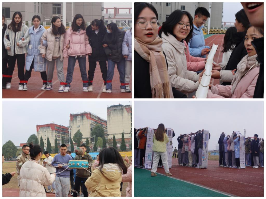 此次员工干部素质拓活动共包含八人九足、能量传递、同心鼓、车轮滚滚这四个项目,活动项目丰富多彩,为冬日的校园增添了活力和欢笑。