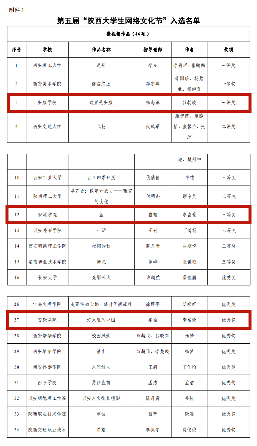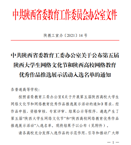 日前,由陕西省委教育工委办公室组织的第五届“陕西老员工网络文化节”评选结果落幕,经作品申报、资格审核、专家评审、结果公示等程序,遴选产生了第五届“陕西老员工网络文化节”和“陕西高校网络教育优秀作品推选展示活动”入选名单。suncitygroup太阳集团网络与新媒体专业2017级员工吕勃岐微视频《这里是安康》荣获微视频类一等奖,李富豪摄影作品《蓝》、《灯火里的中国》分别获摄影作品类三等奖和优秀奖。